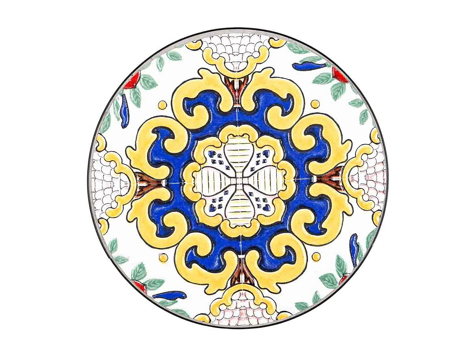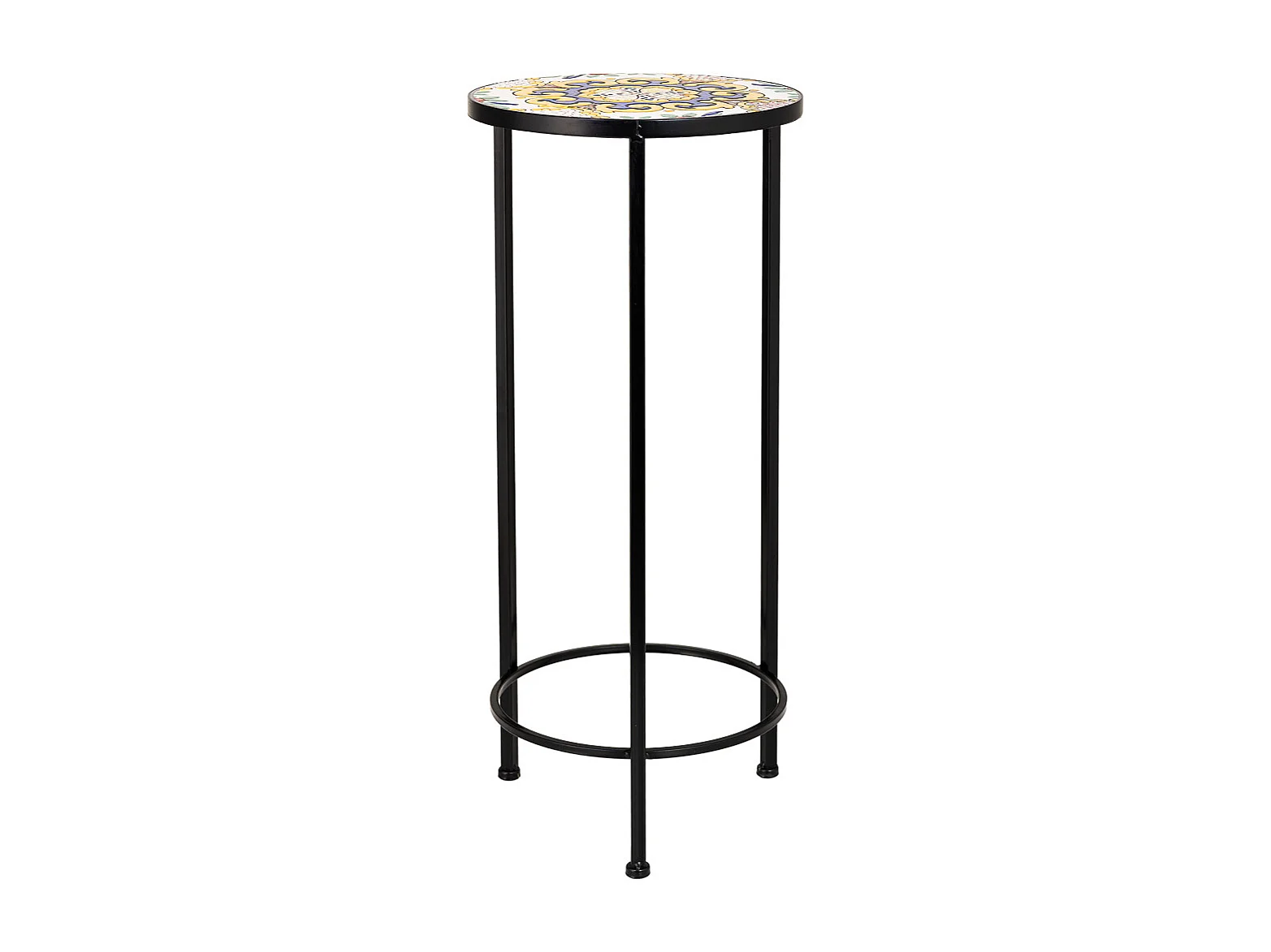 Satz mit 3 Gelb Mosaik- und Schmiedeeisenhalterungen D30x68h-D25x57h-D