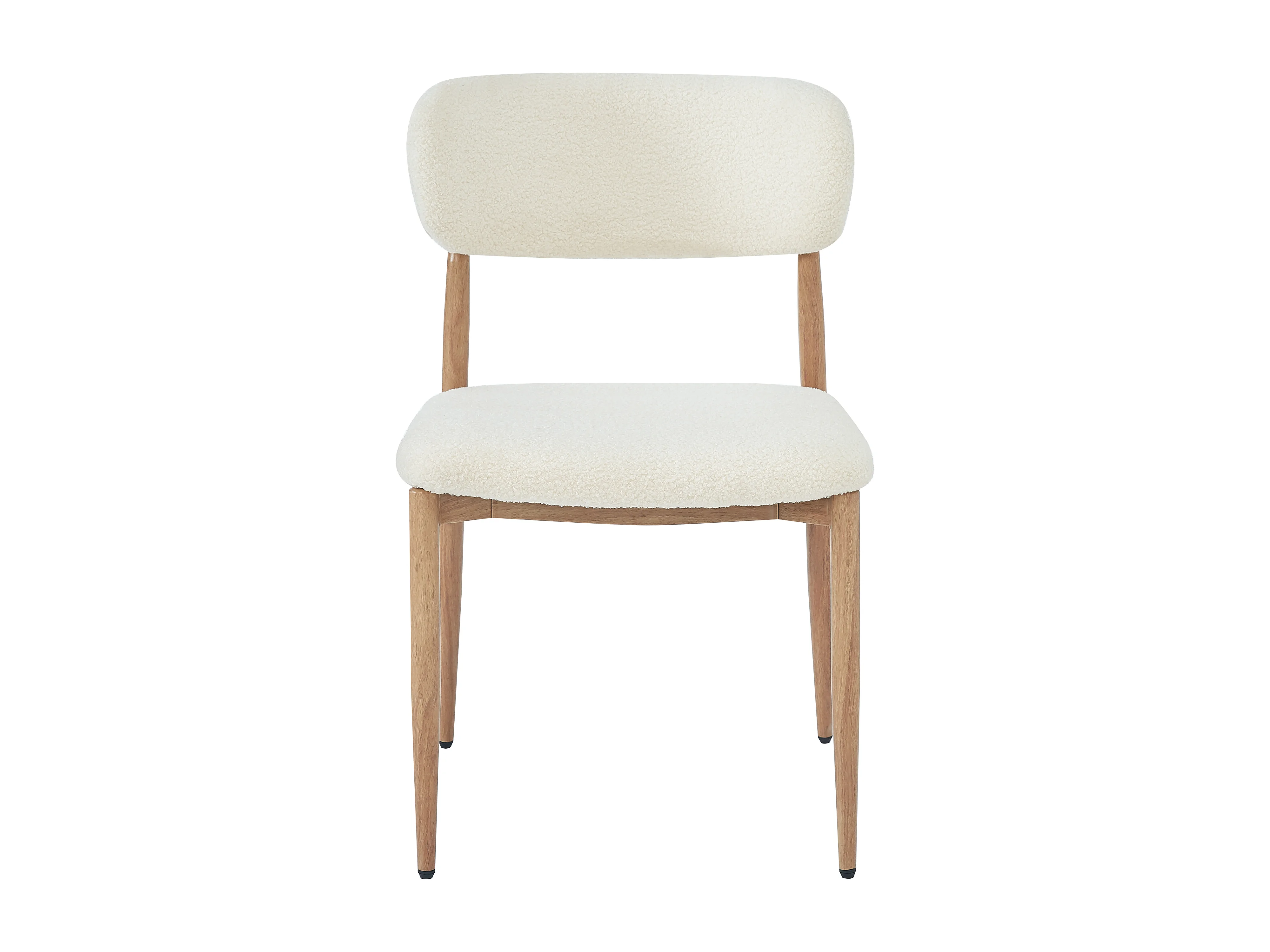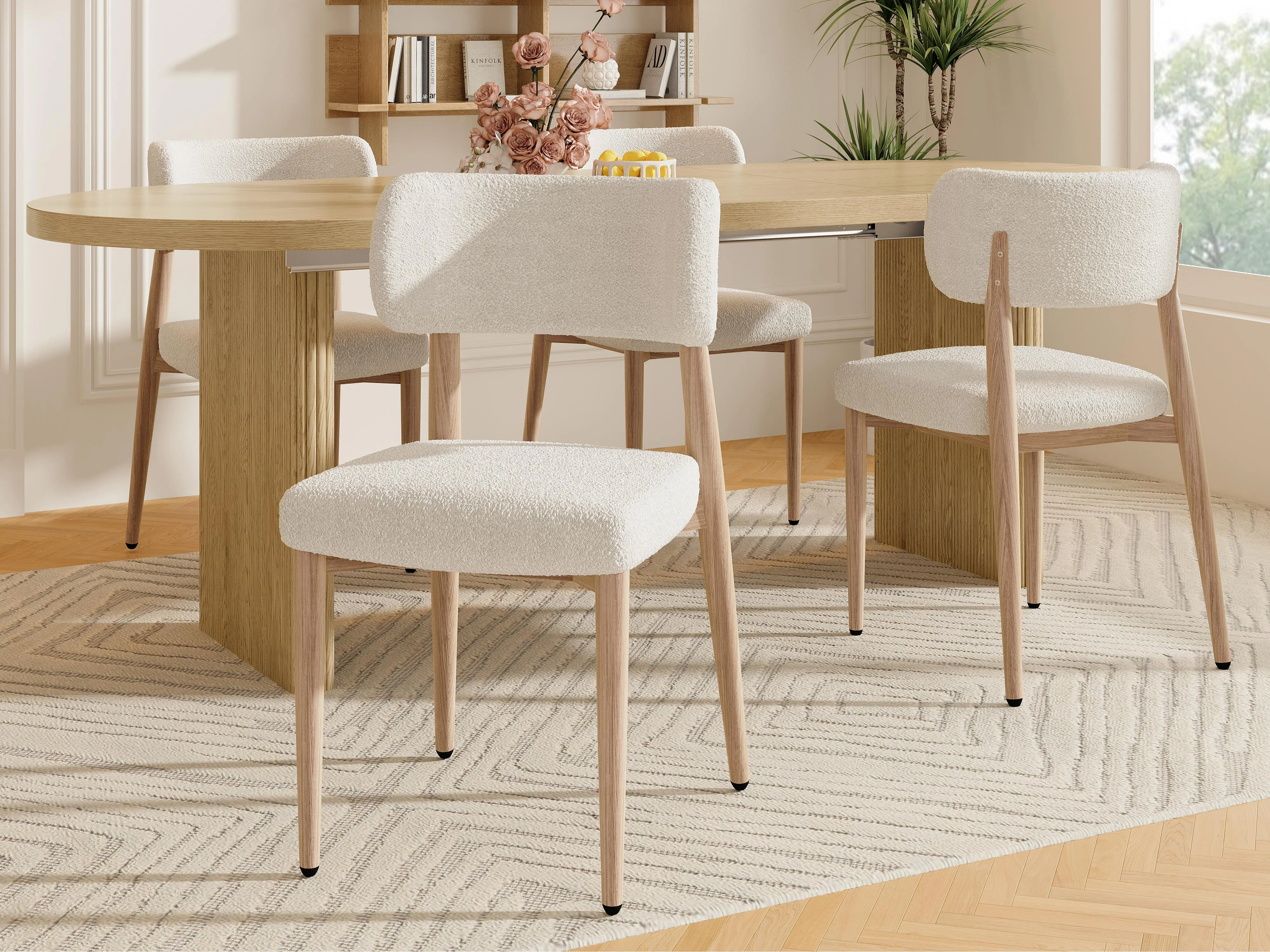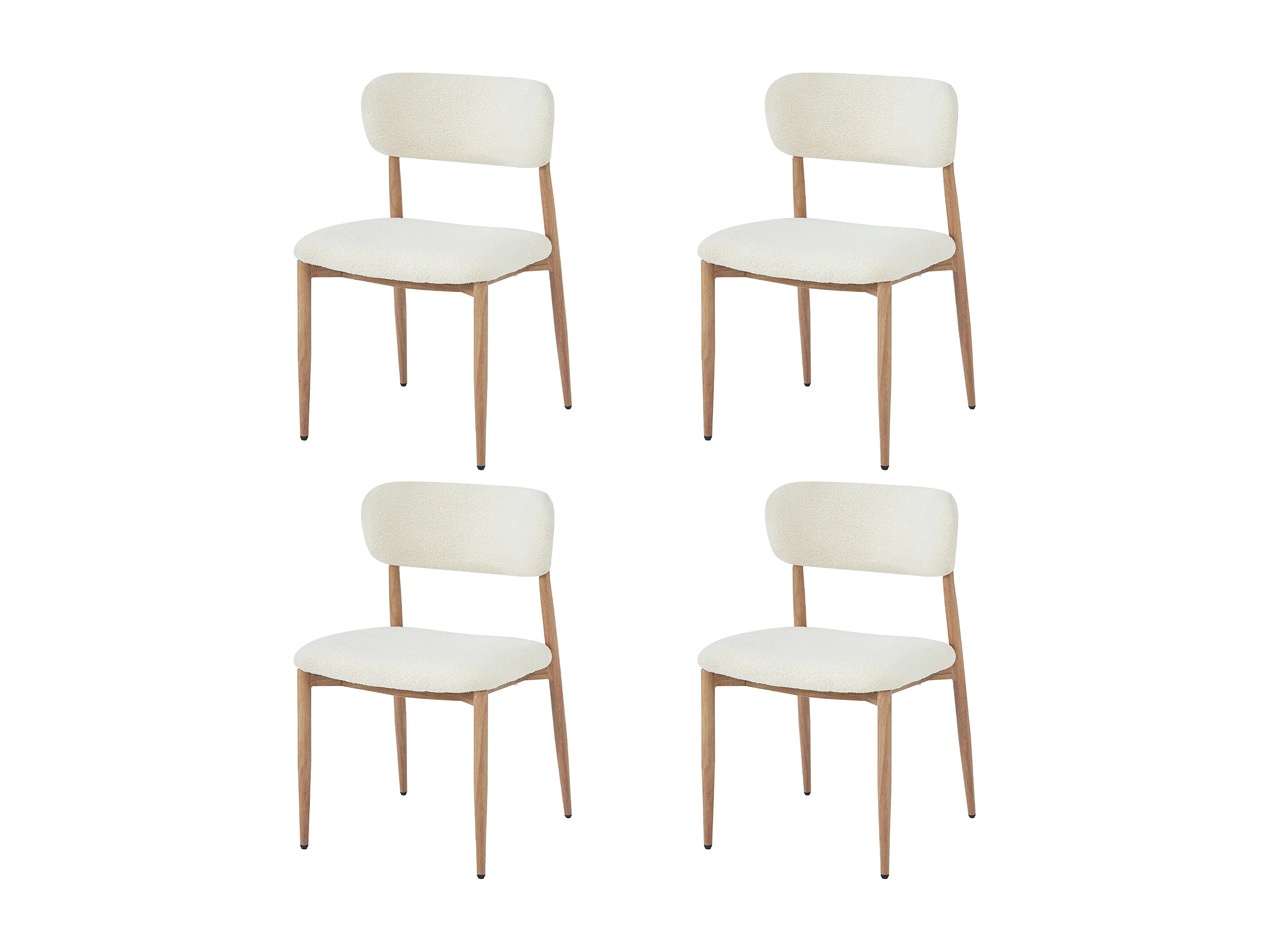 Satz mit 4 Metall-Stühlen - Holzoptik - Bouclé-Stoff beige - Weiches Sitzkissen - Natur