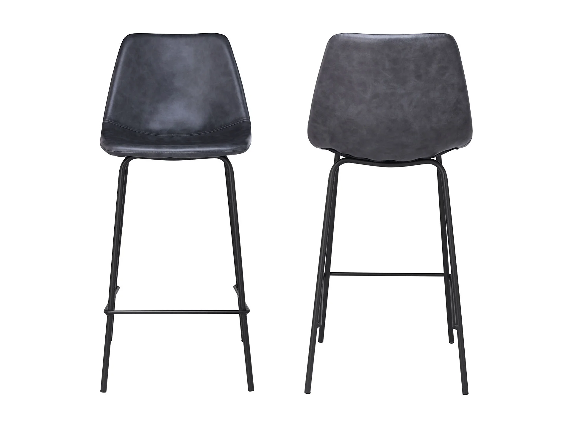 2er Set Barhockern LUCIEN im Vintage-Stil, dunkelgrau - Sitzhöhe 65cm
