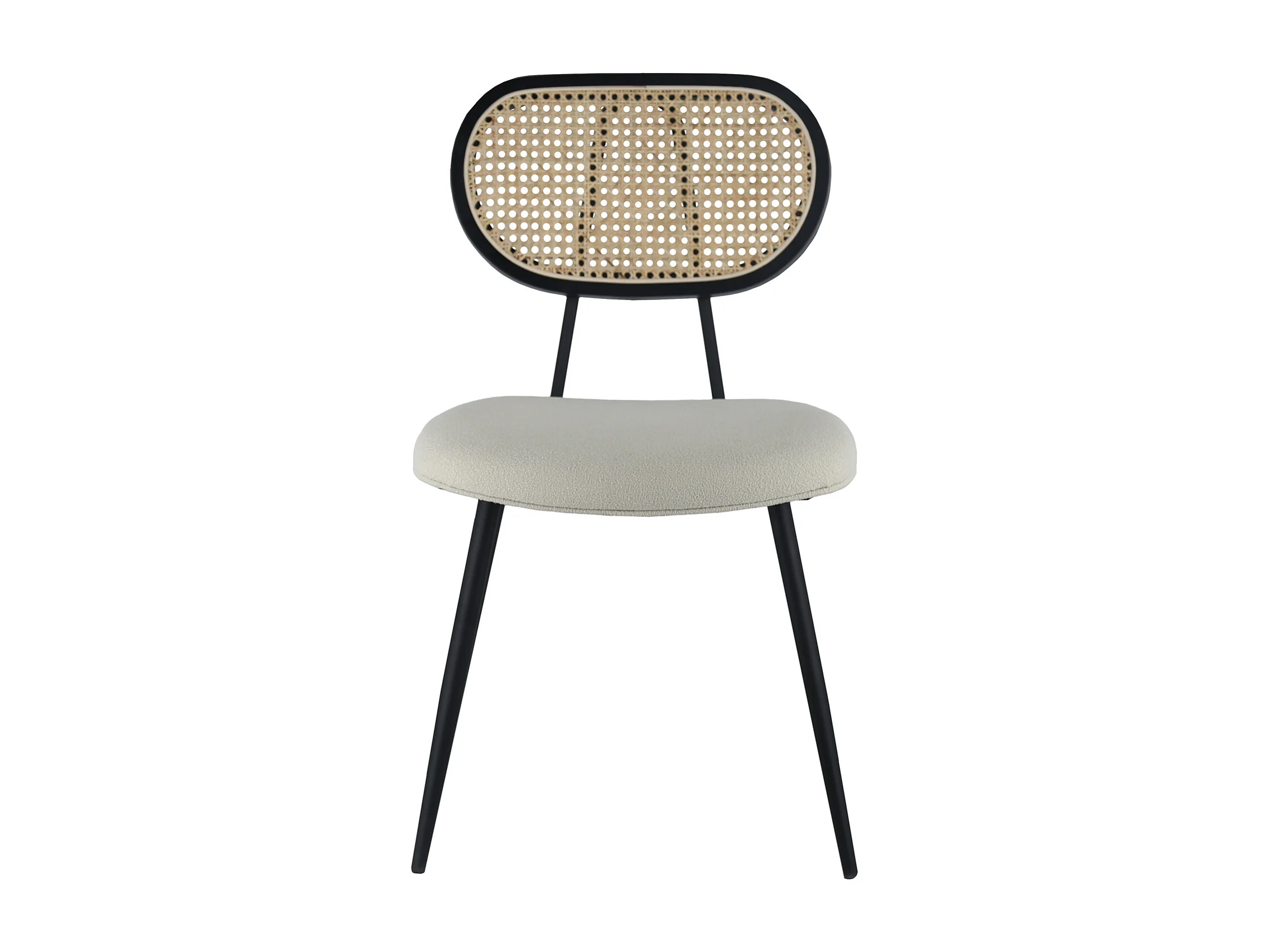 2er Set Stühlen aus Rohrgeflecht und ungebleichtem Schlingenstoff ELENA
