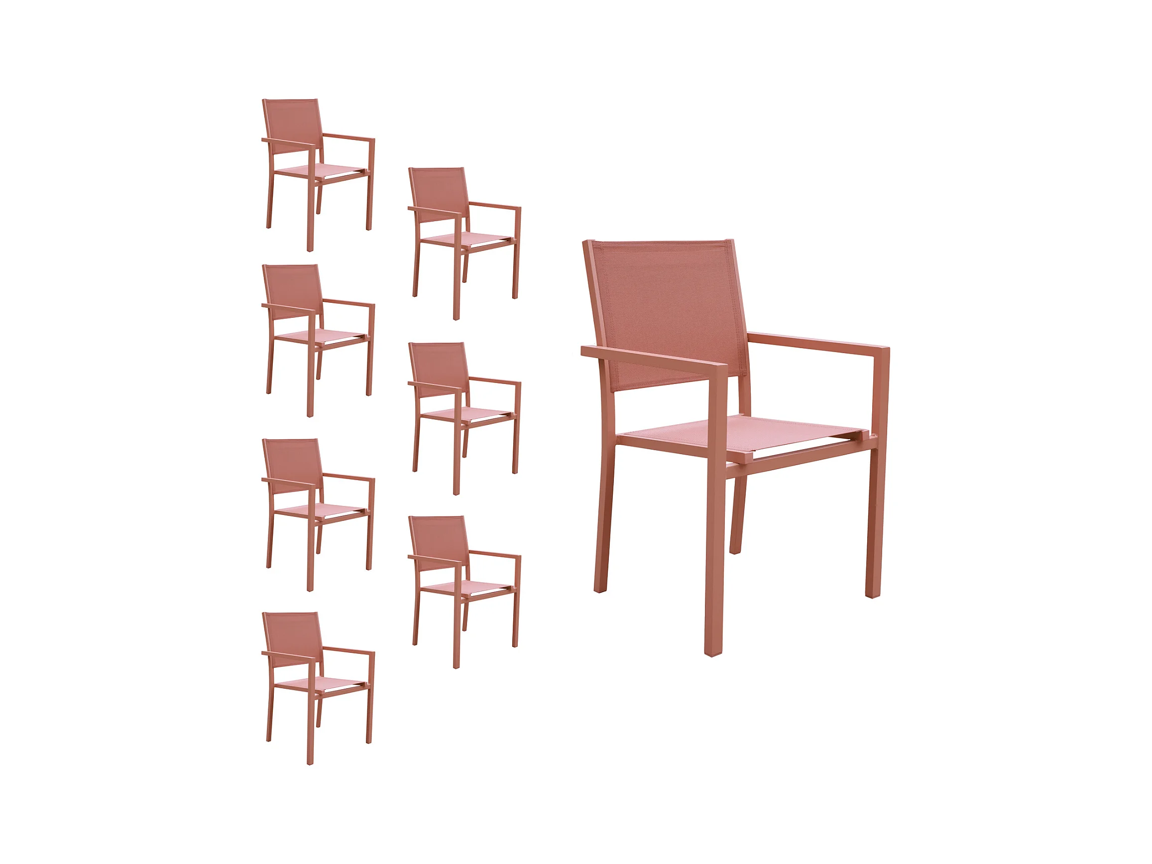 8er Set Stühle aus Aluminium Terracotta - Textilene Terracotta