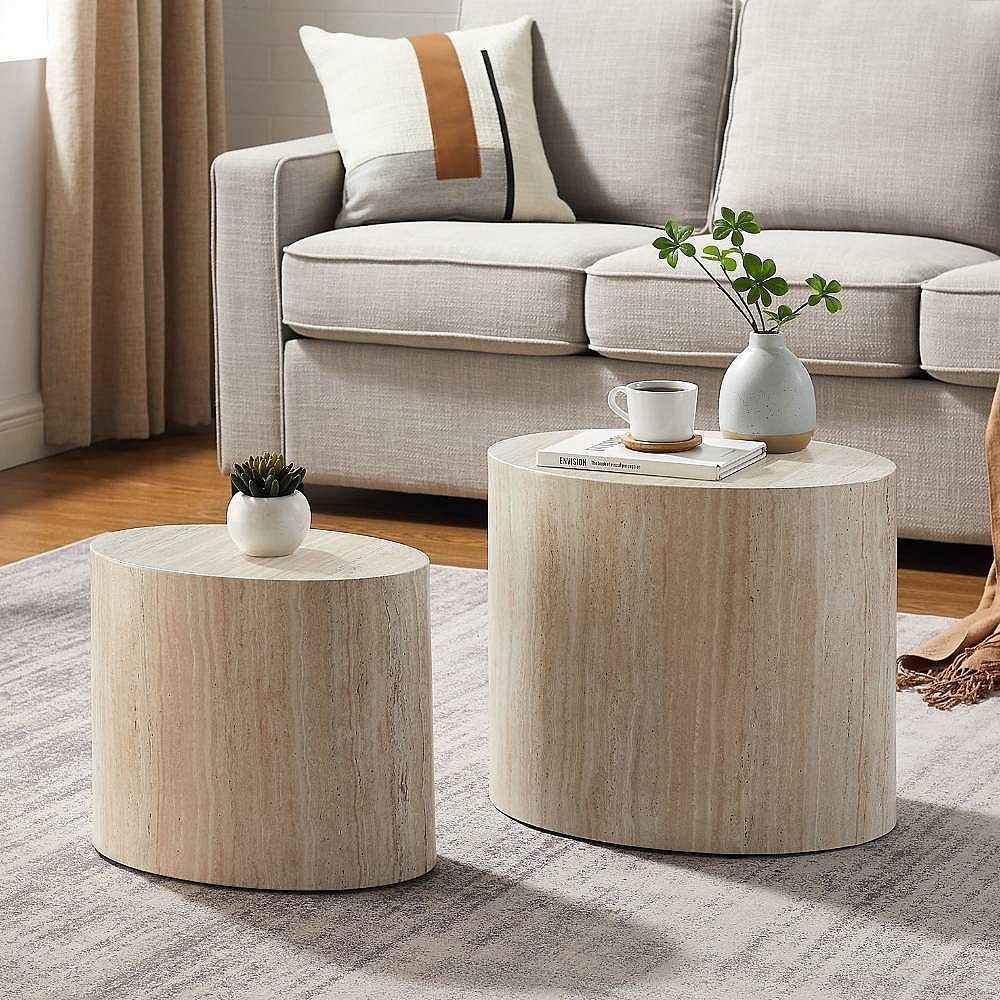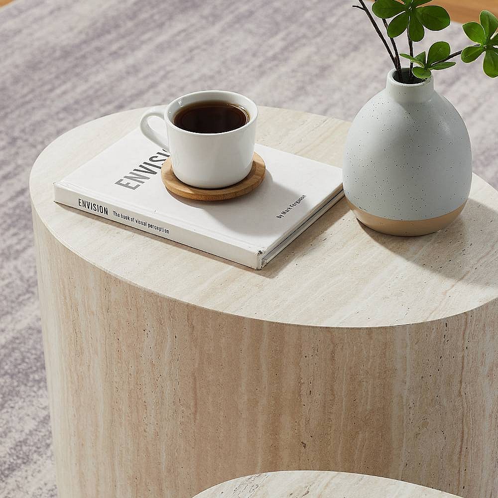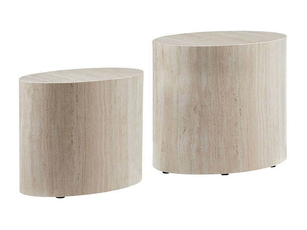 Satztisch Couchtisch Set in Beige und Marmor Optik (zweiteilig)
