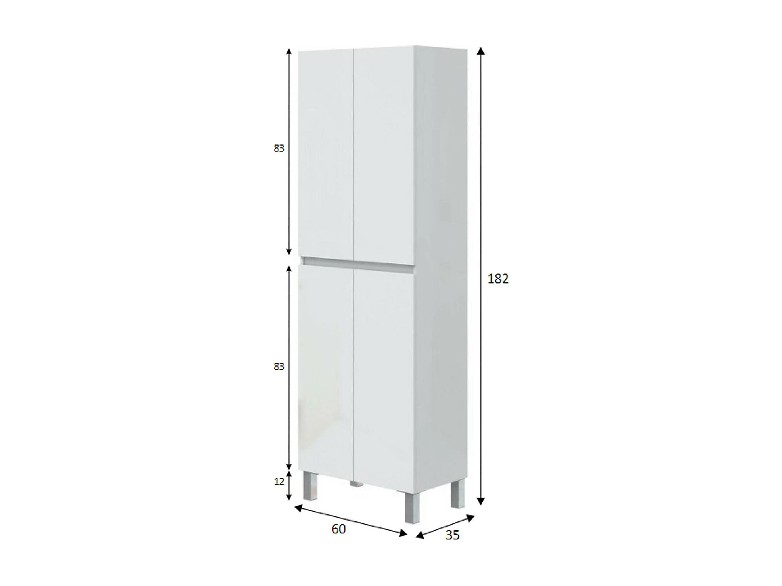 Säulenschrank Dzecchi, Schrank für Badezimmer oder Küche, Multifunktionaler Hochschrank, Mehrzweckschrank, 60x35 h182 cm, Glänzendes Weiß