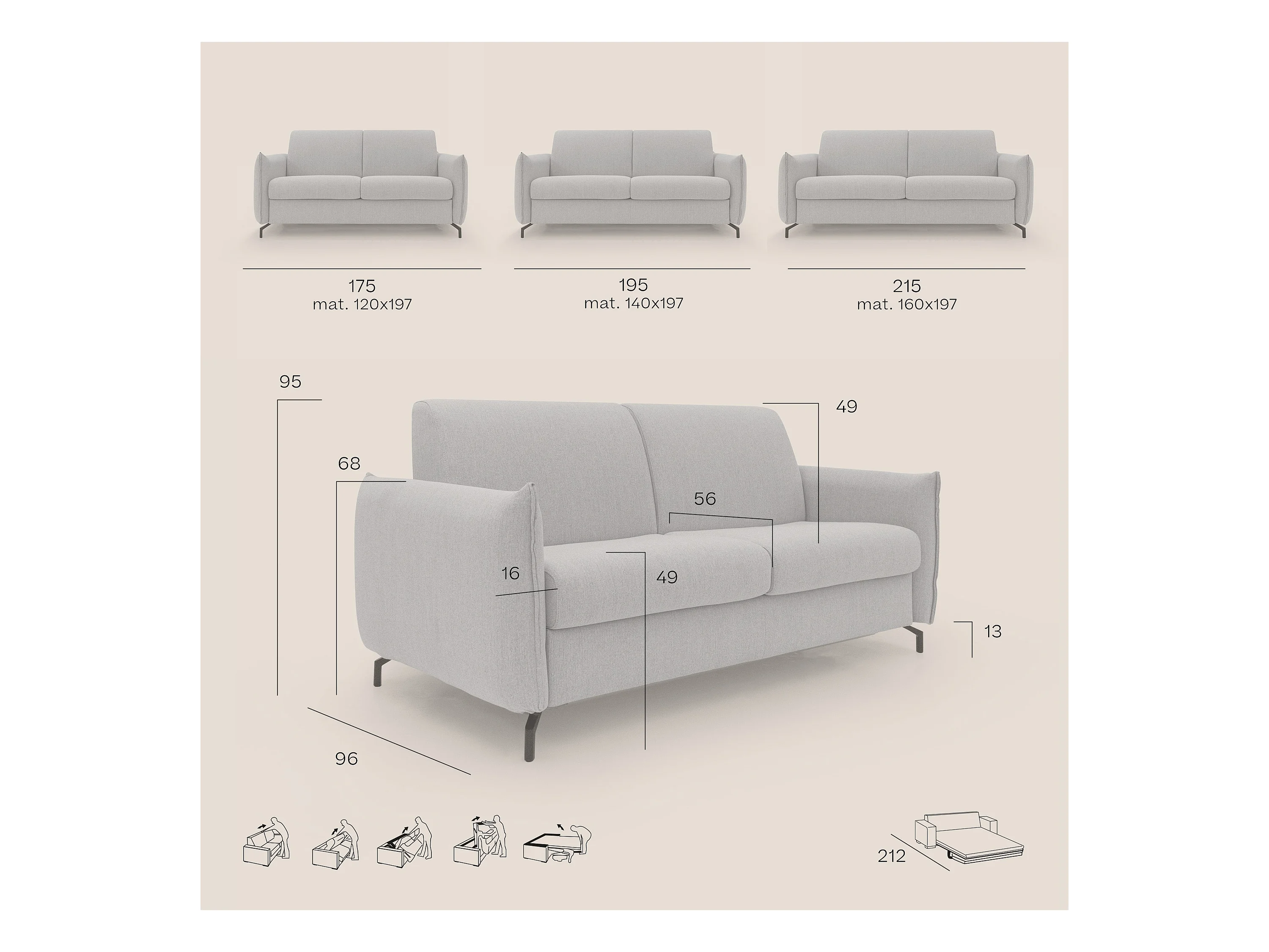 Scarlet Schlafsofa aus wasserfestem Baumwollmischgewebe T19 215 cm (mat.160x197) grün