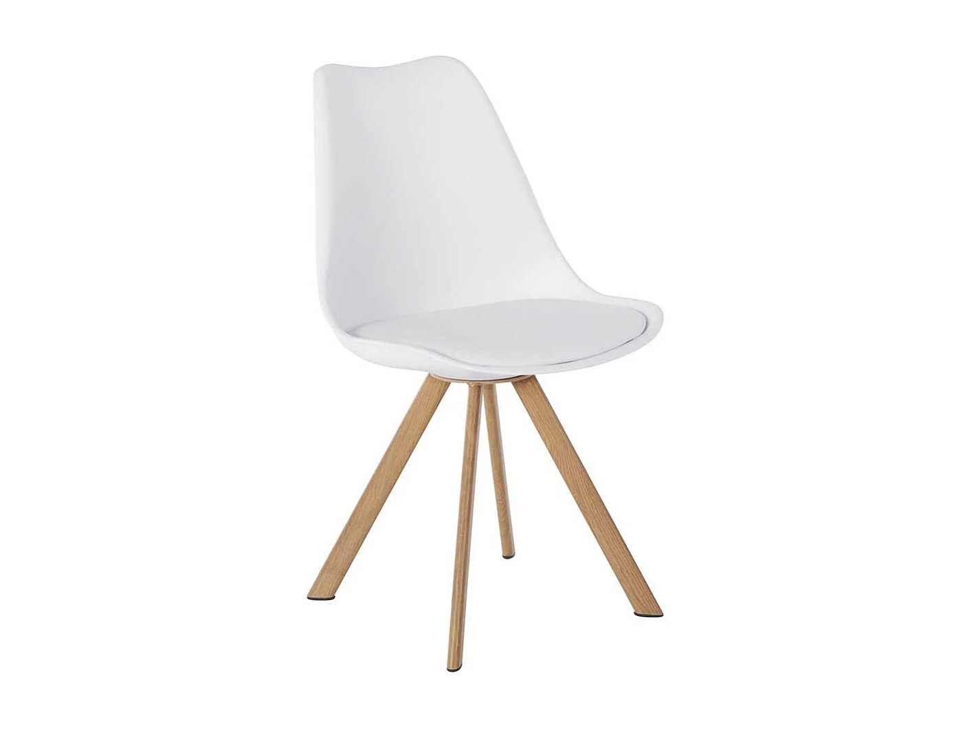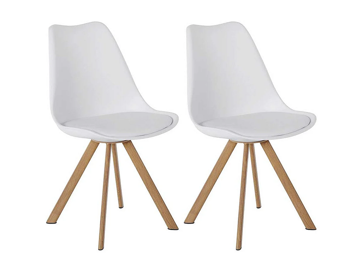 Schalenstühle in Weiß und Eichefarben Gestell aus Metall (2er Set)