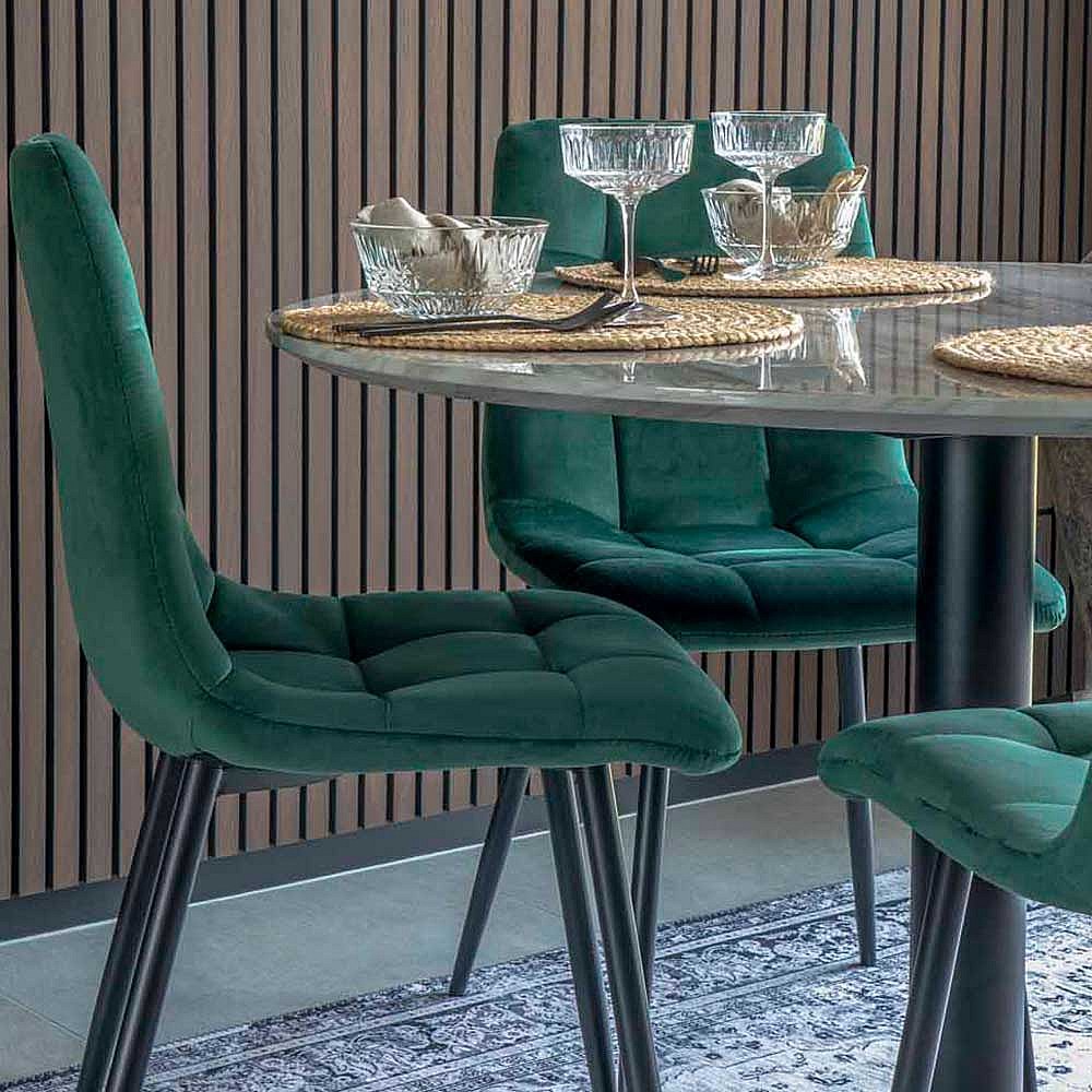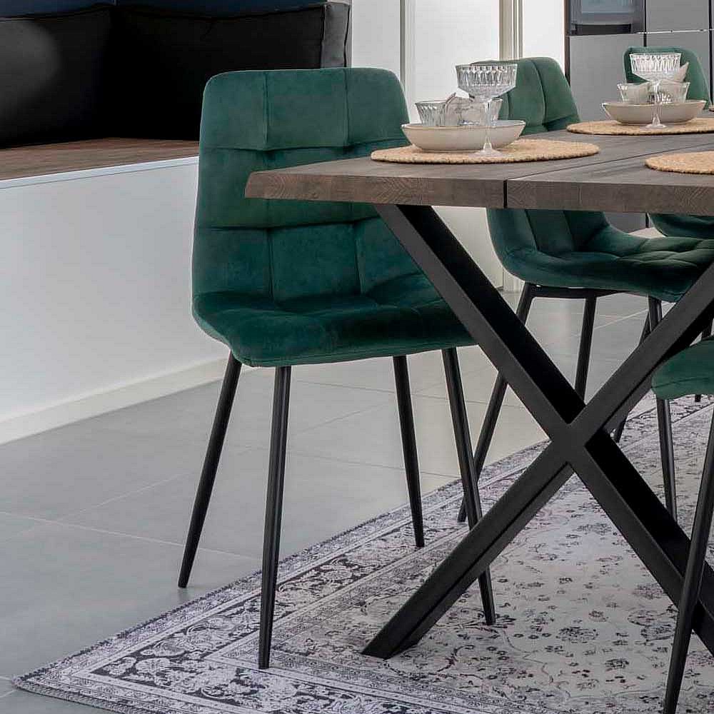 Schalenstuhl in Dunkelgrün Samt aufwendige Steppungen (2er Set)