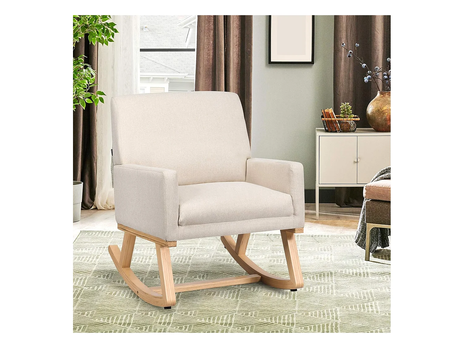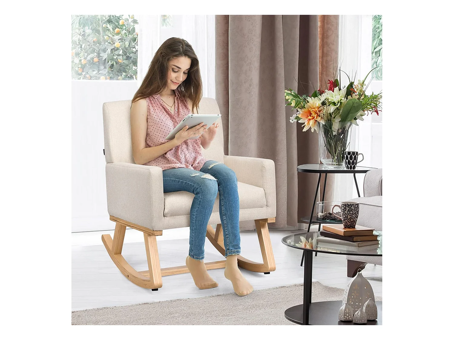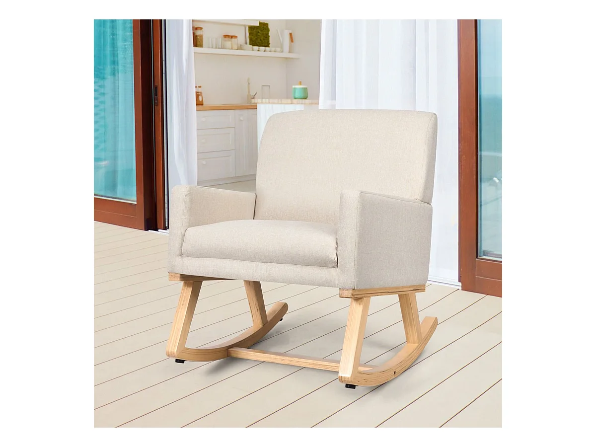 Gepolsterter Schaukelsessel aus Massivholz Schaukelstuhl Schwingsessel Relaxstuhl Beige