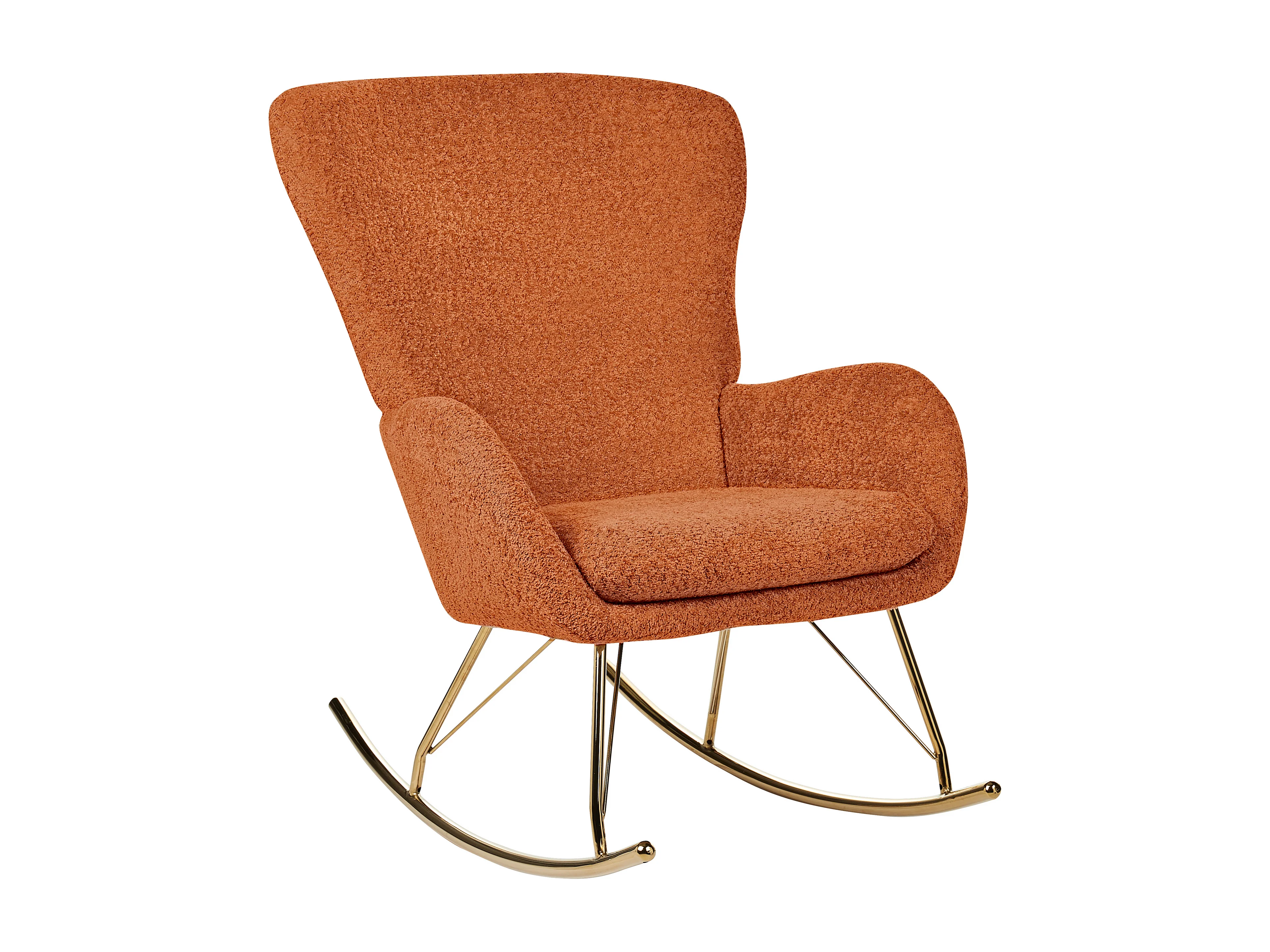 Schaukelsessel Bouclé Stoff orange/gold Schaukelstuhl modern elegant edel Anaset