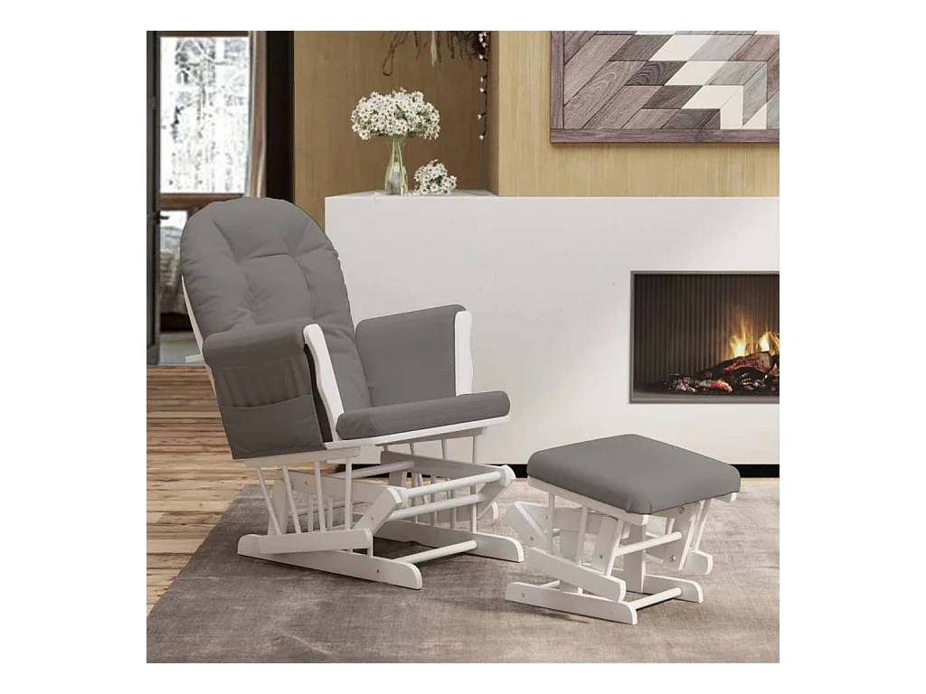 Schaukelsessel mit Hocker Gleitend Dunkelgrau Stoff