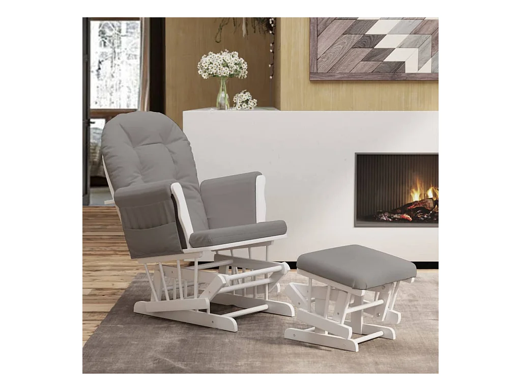 Schaukelsessel mit Hocker Gleitend Hellgrau Stoff