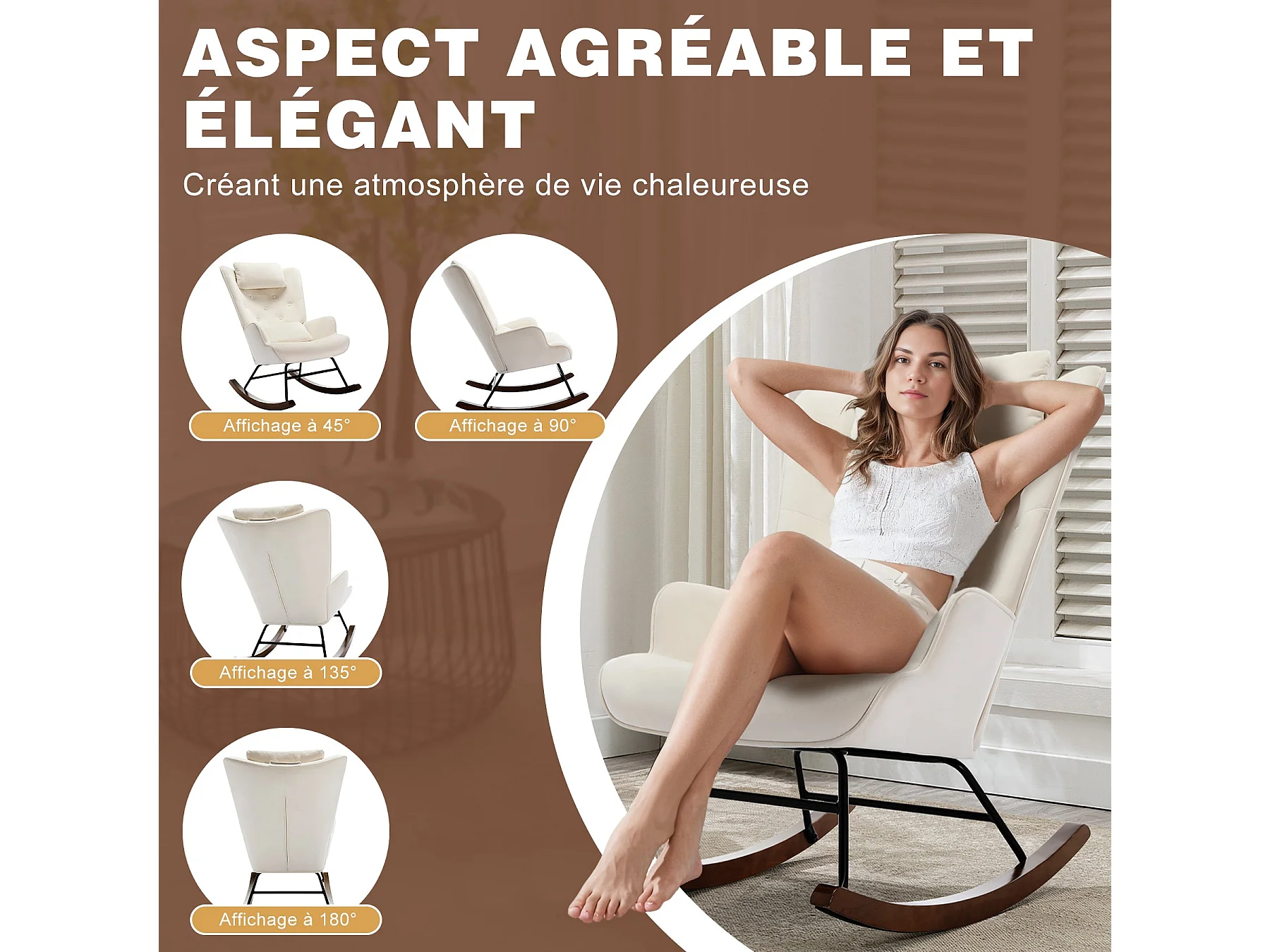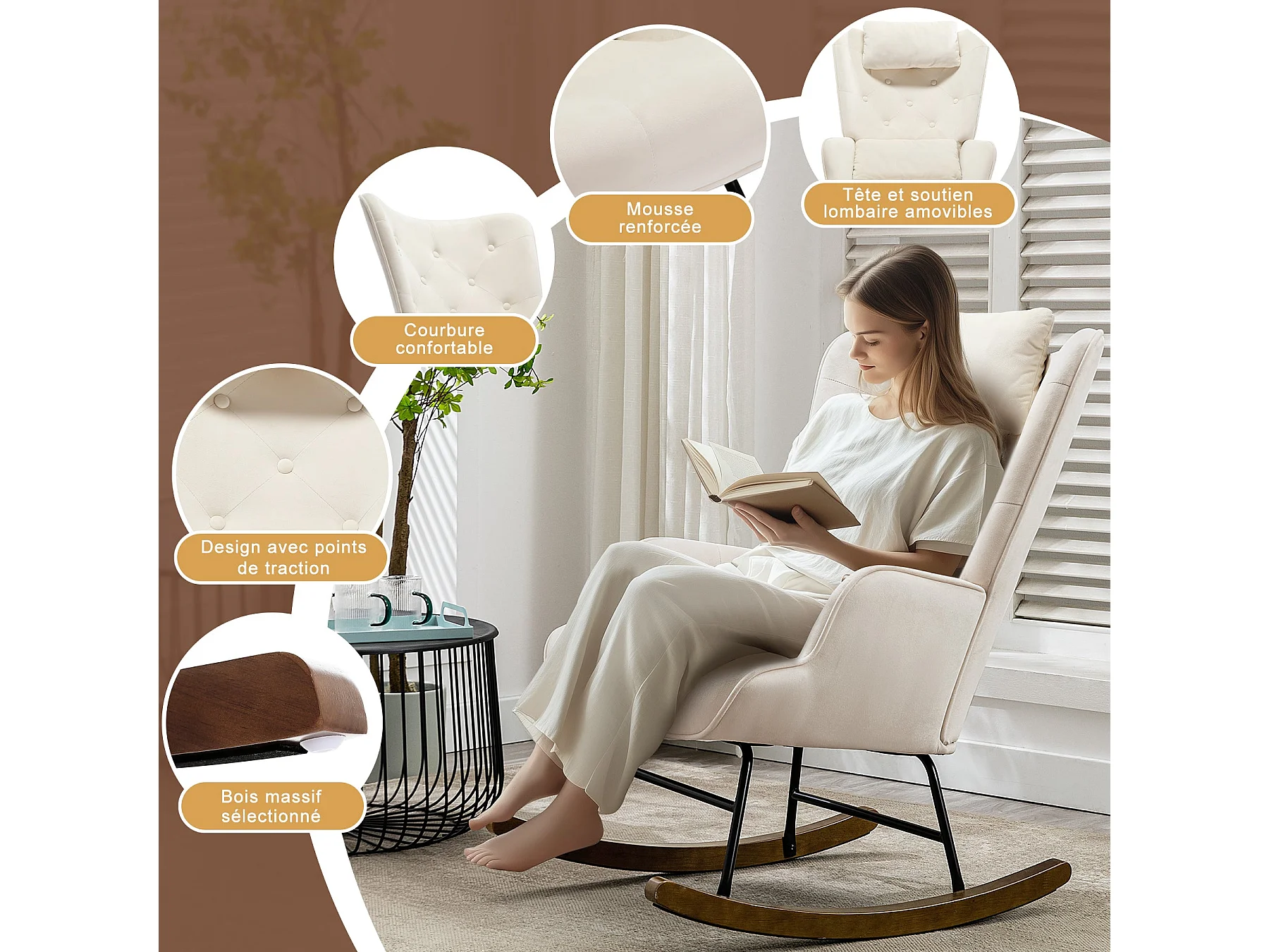 Schaukelstuhl mit Kopfstütze, Loungesessel aus Samt, Stillsessel, Schaukelstuhl