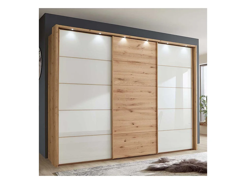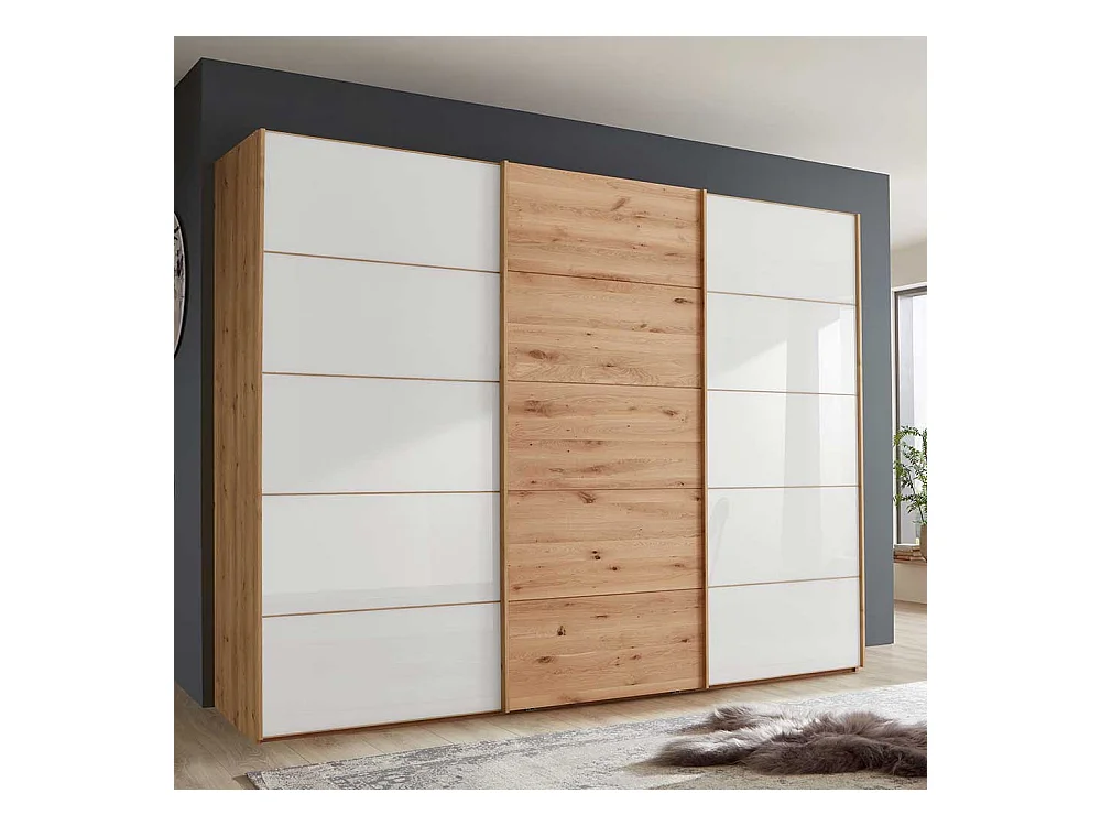 Schiebeschrank in Eiche Bianco Weiß glasbeschichtet