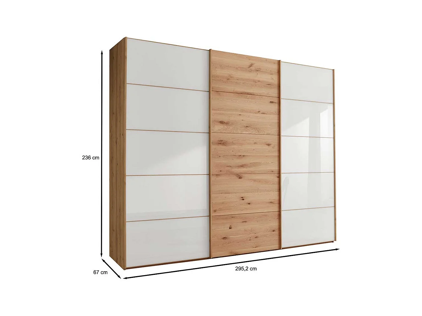 Schiebeschrank in Eiche Bianco Weiß glasbeschichtet