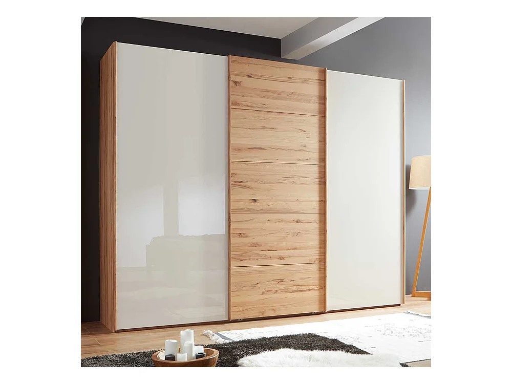 Schiebetüren Kleiderschrank in Beige Glas beschichtet Astkernbuche