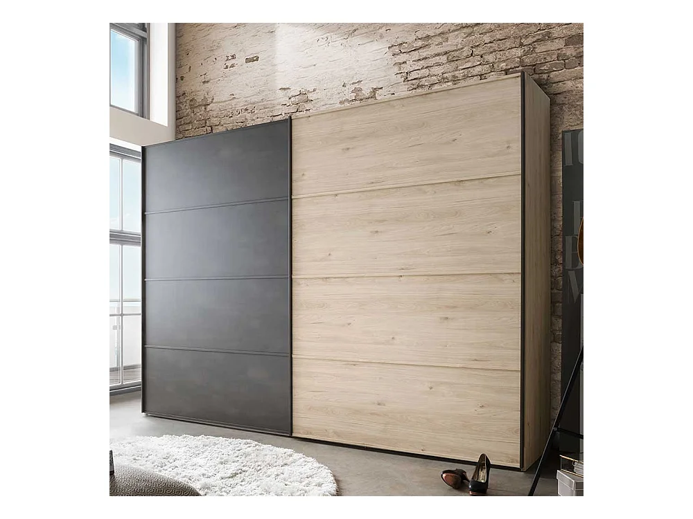 Schiebetüren Kleiderschrank in Eichefarben Dunkelgrau