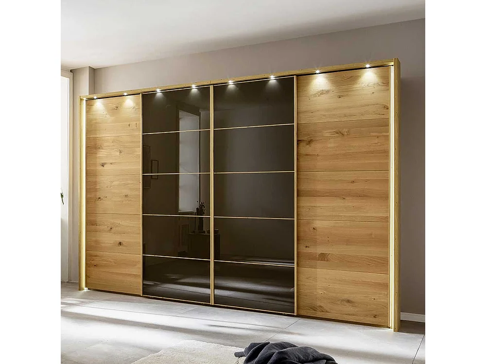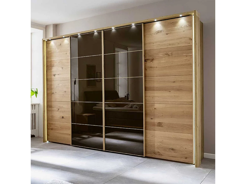 Schiebetürschrank mit Rahmen in Eiche Bianco Dunkelbraun