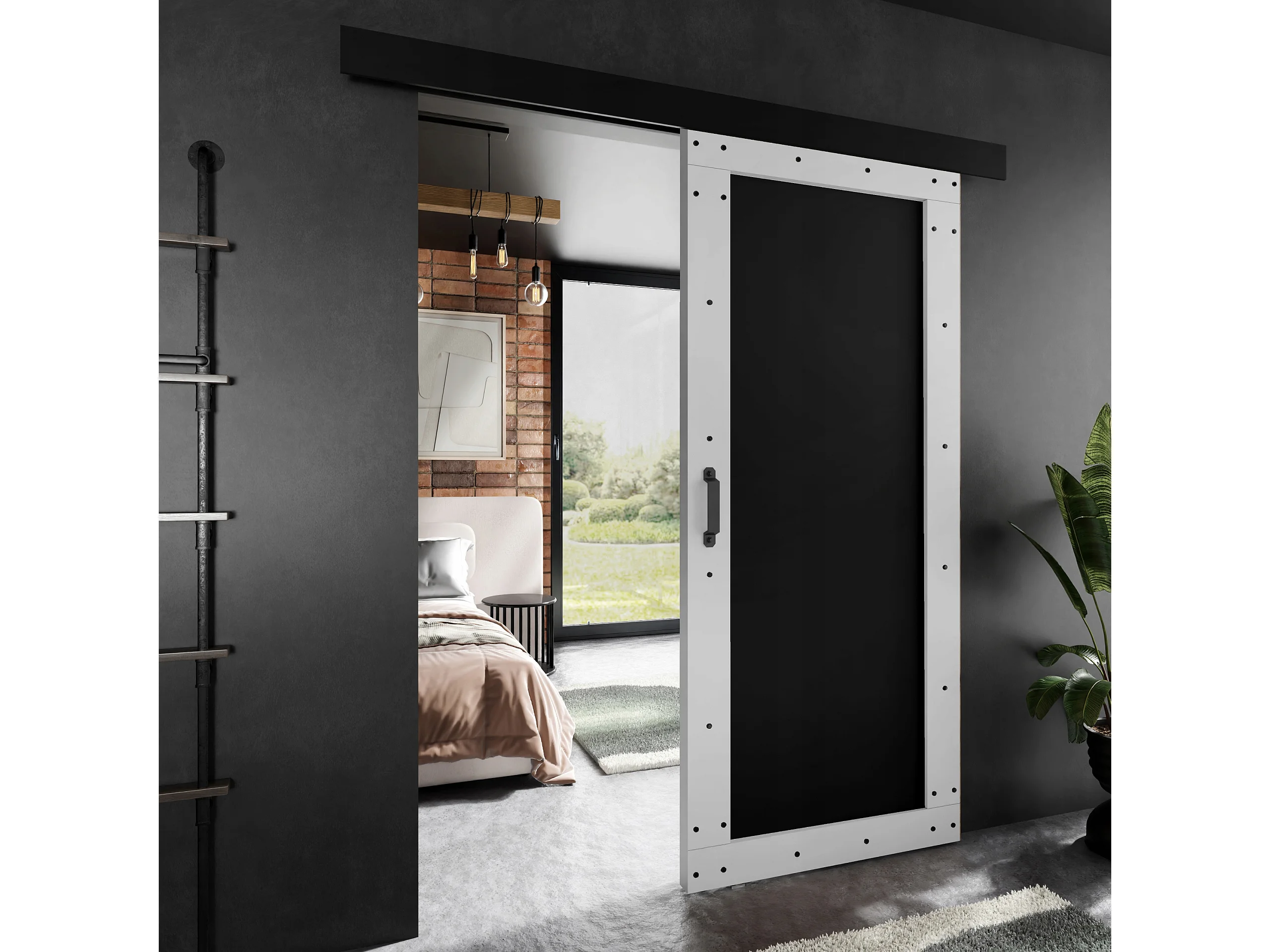 Schiebetür ADIO 2 mit Blende Weiß und Schwarz 90