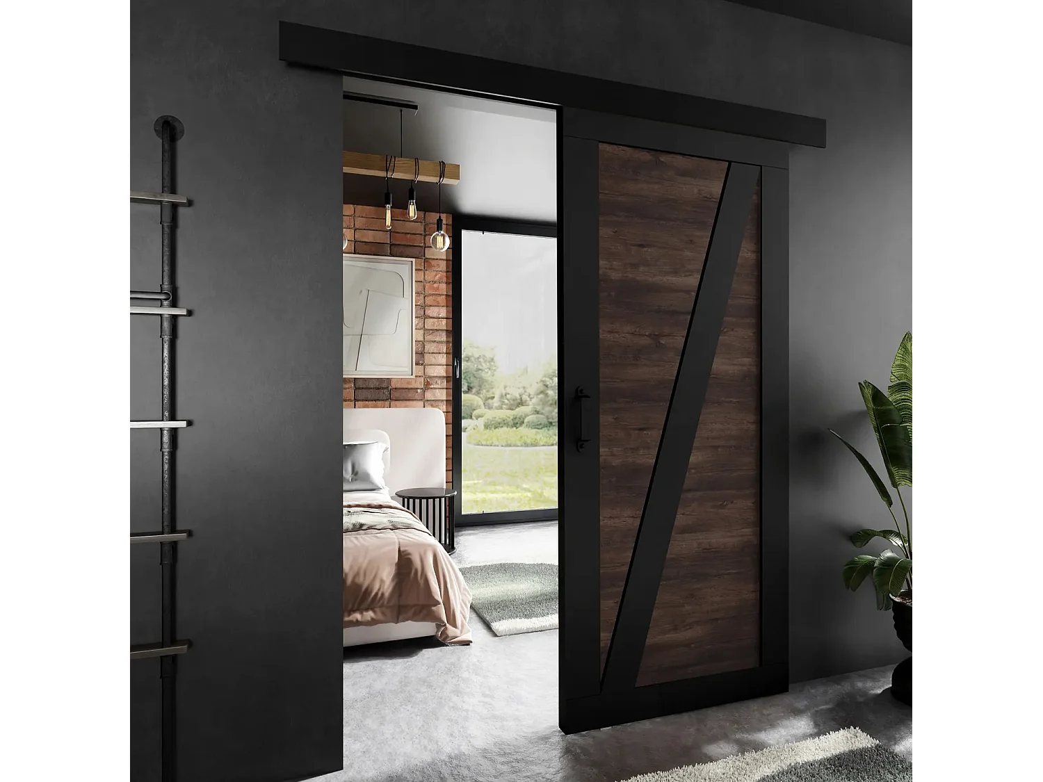 Schiebetür ADIO 3 mit Blende Schwarz und Dunkle Esche 90