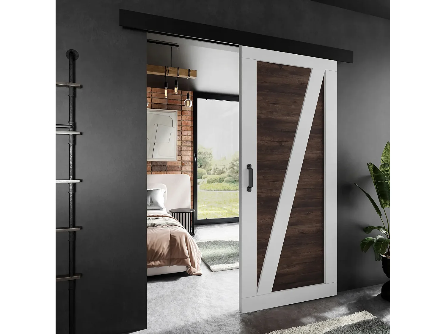 Schiebetür ADIO 3 mit Blende Weiß und Dunkle Esche 80
