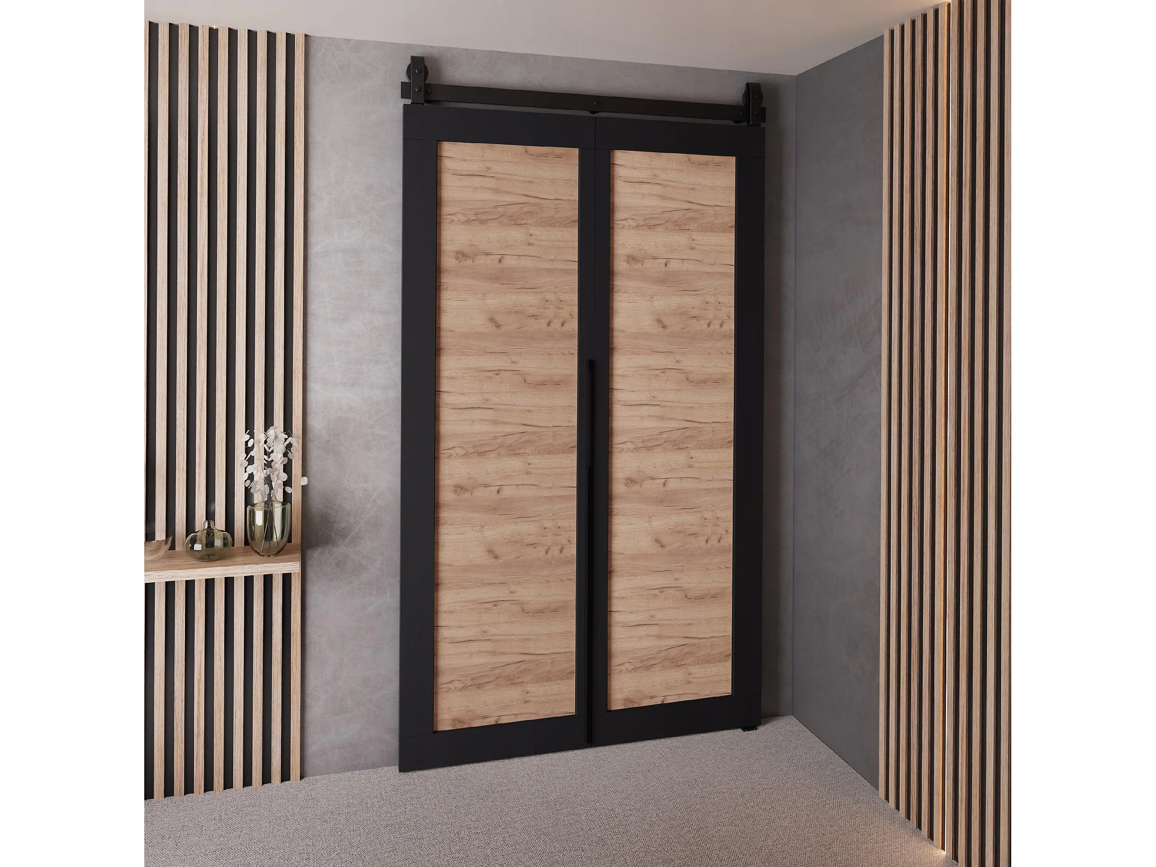 Schiebetür QUDIO M1 Schwarz + Eiche Craft Gold 100