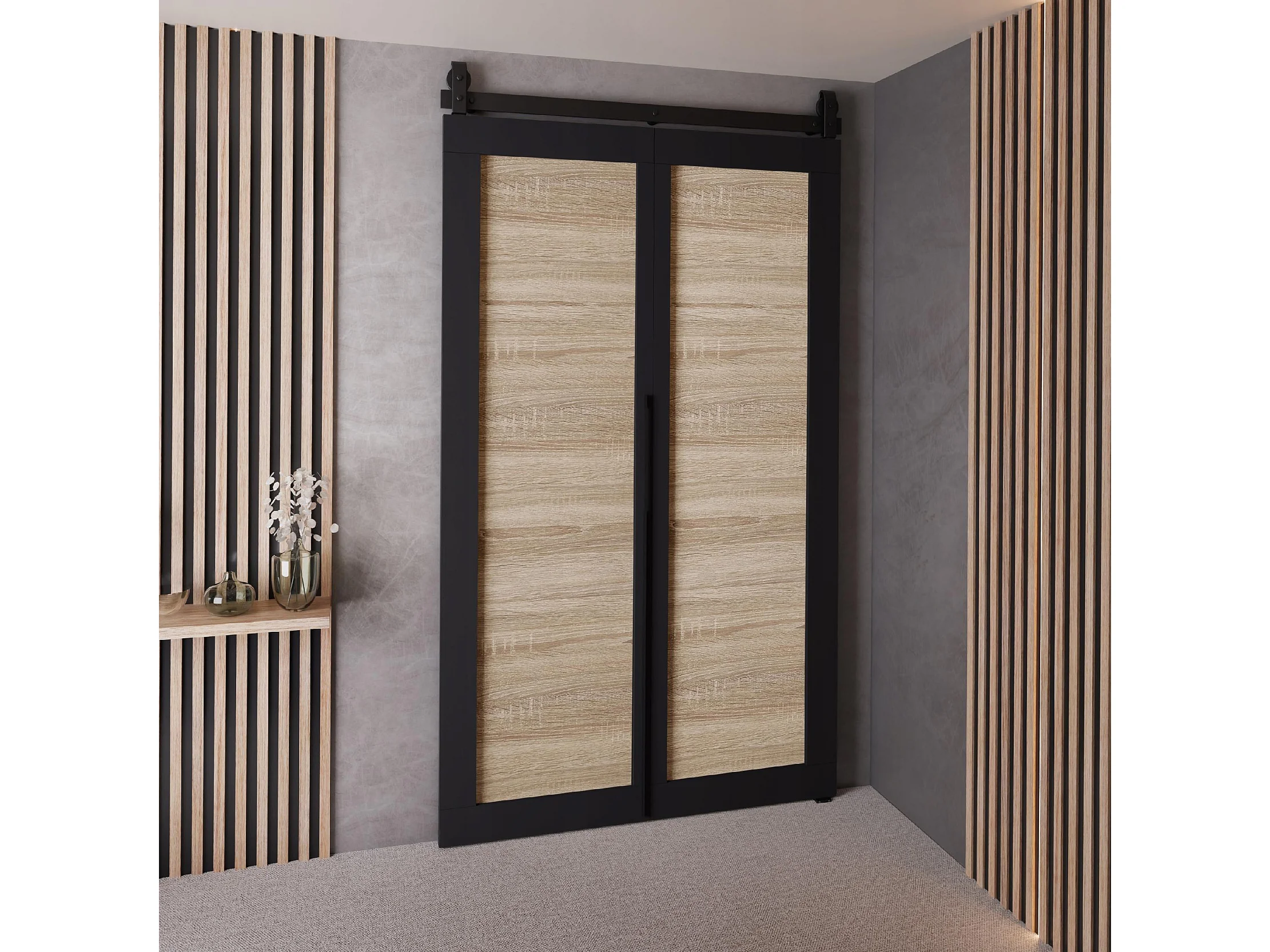 Schiebetür QUDIO M1 Schwarz + Eiche Sonoma 100