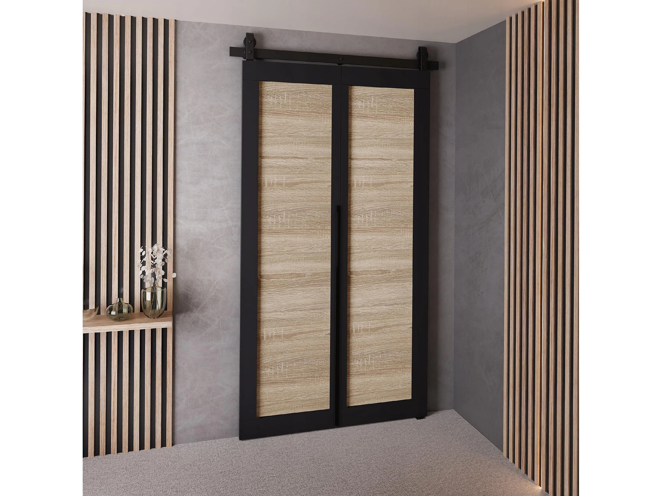 Schiebetür QUDIO M1 Schwarz + Eiche Sonoma 90