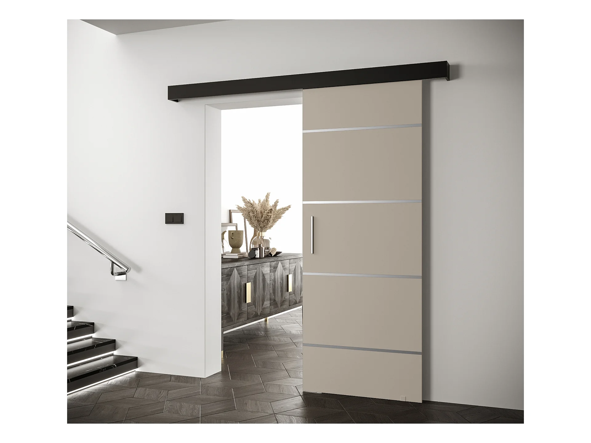 Schiebetür Salwador IV 70x204 cm (Kaschmir / Schwarz / Silber)