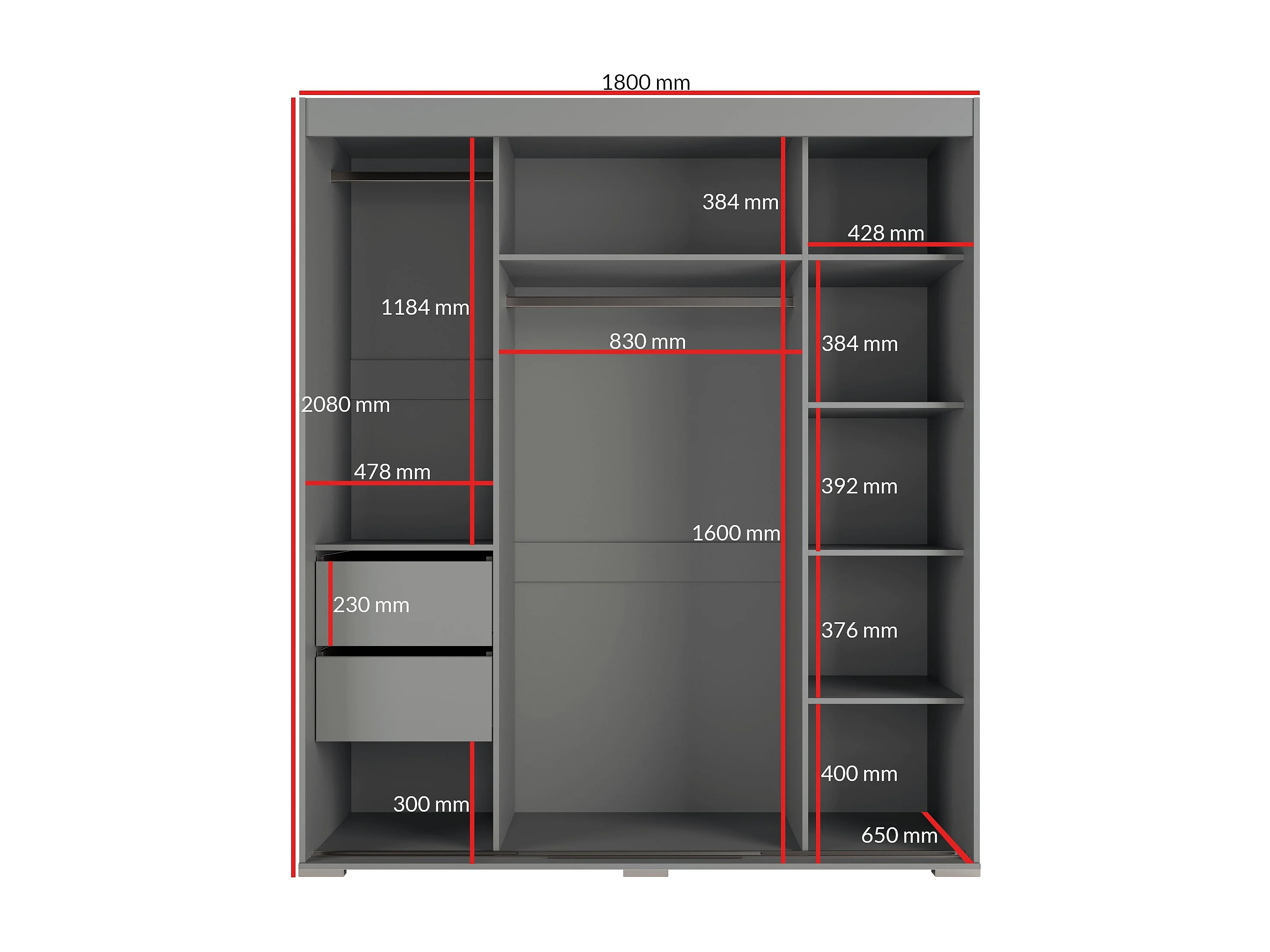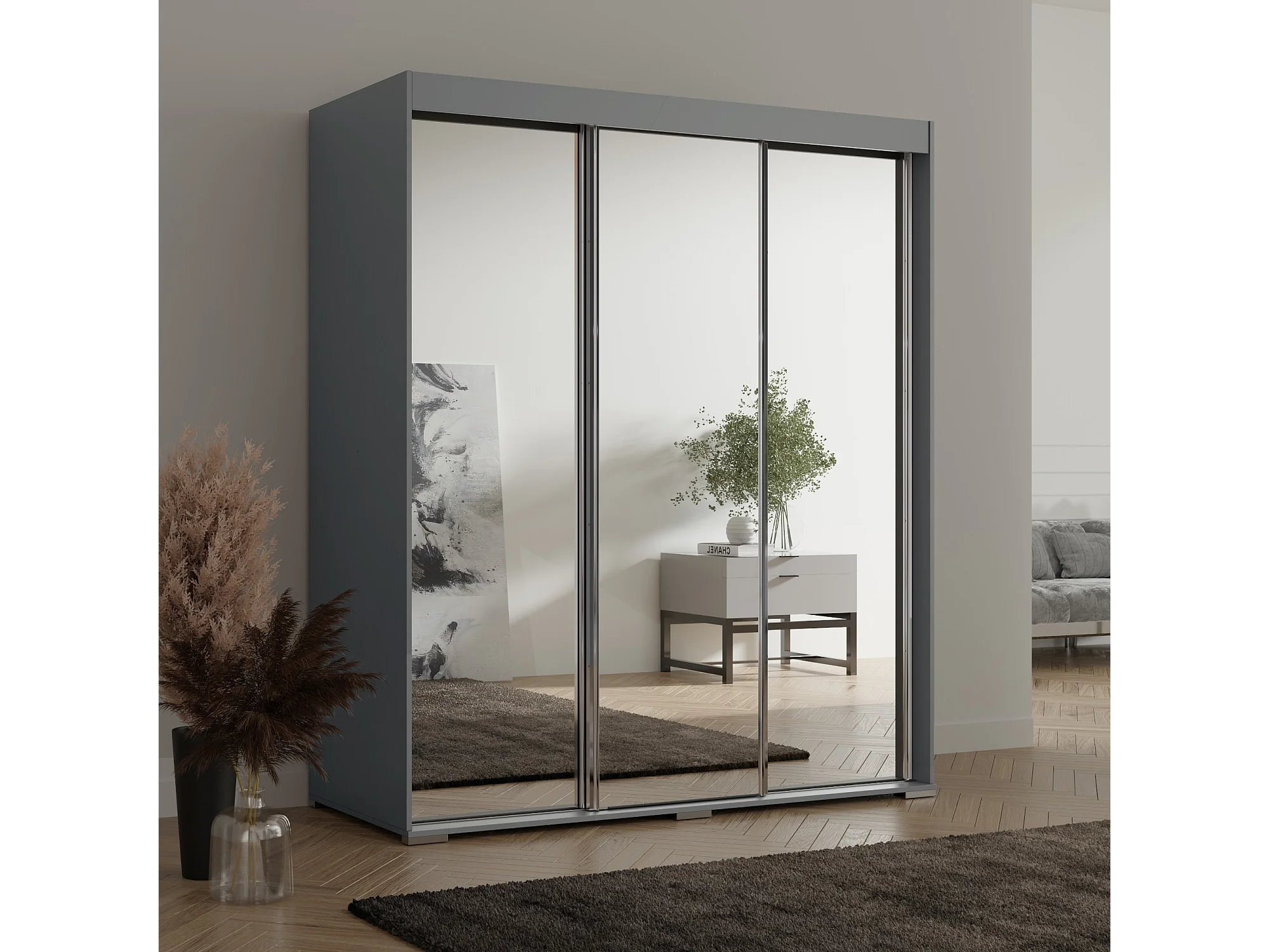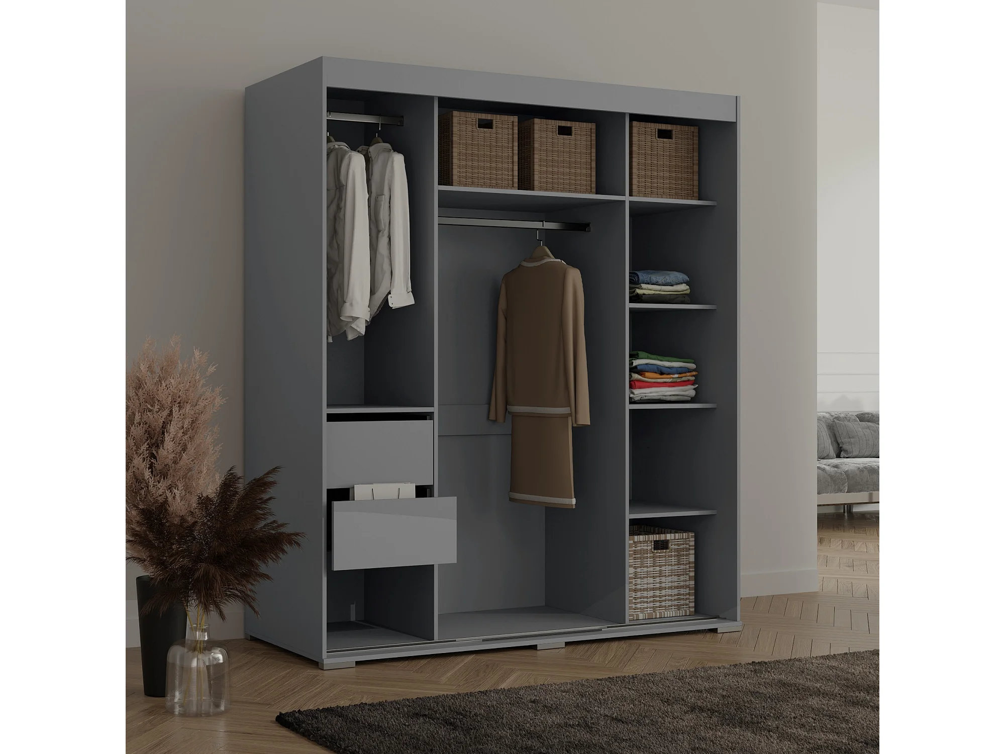 Schiebetürenchrank mit Schubladen und Spiegel Como 3D3L 180 Grau
