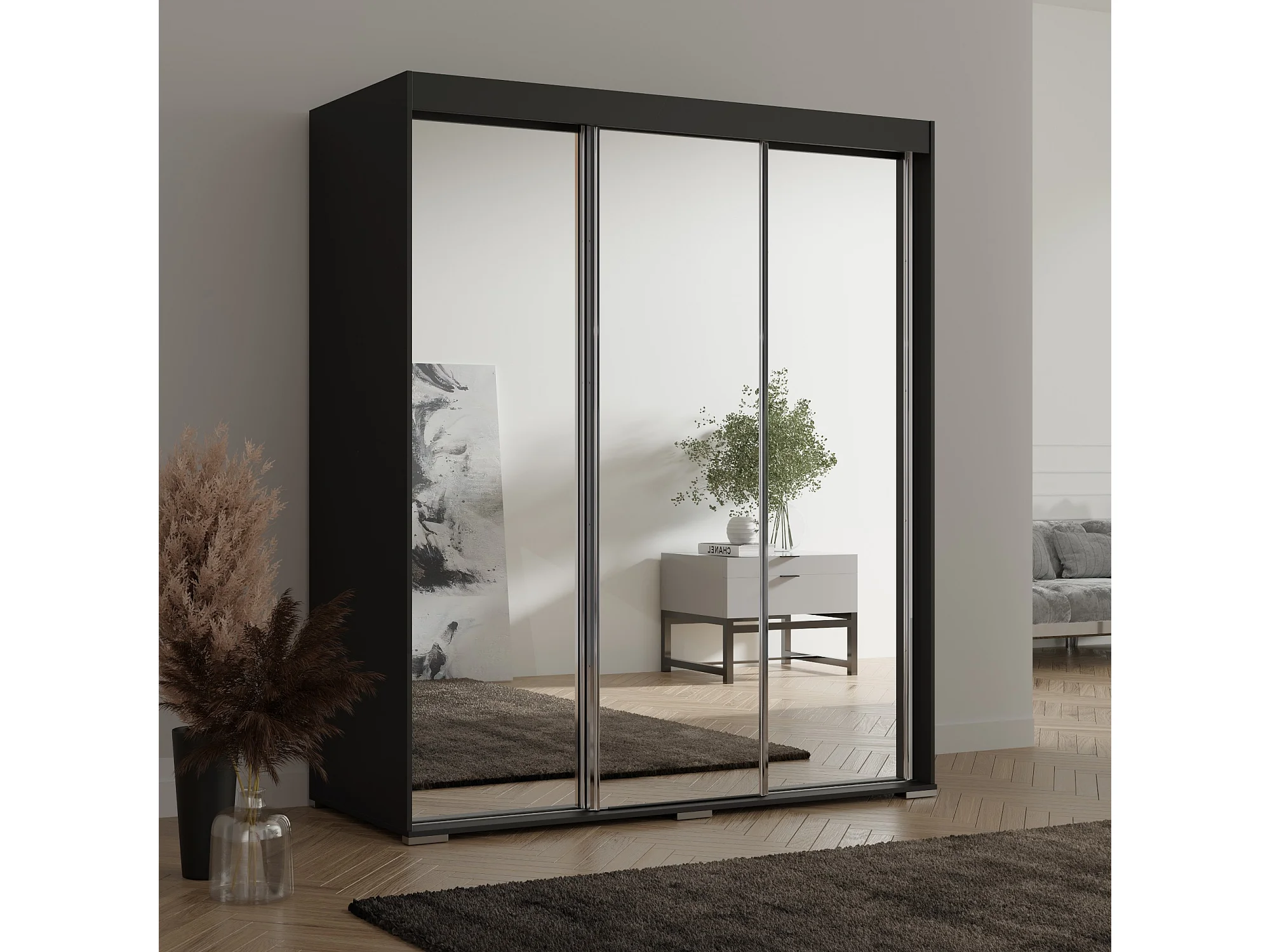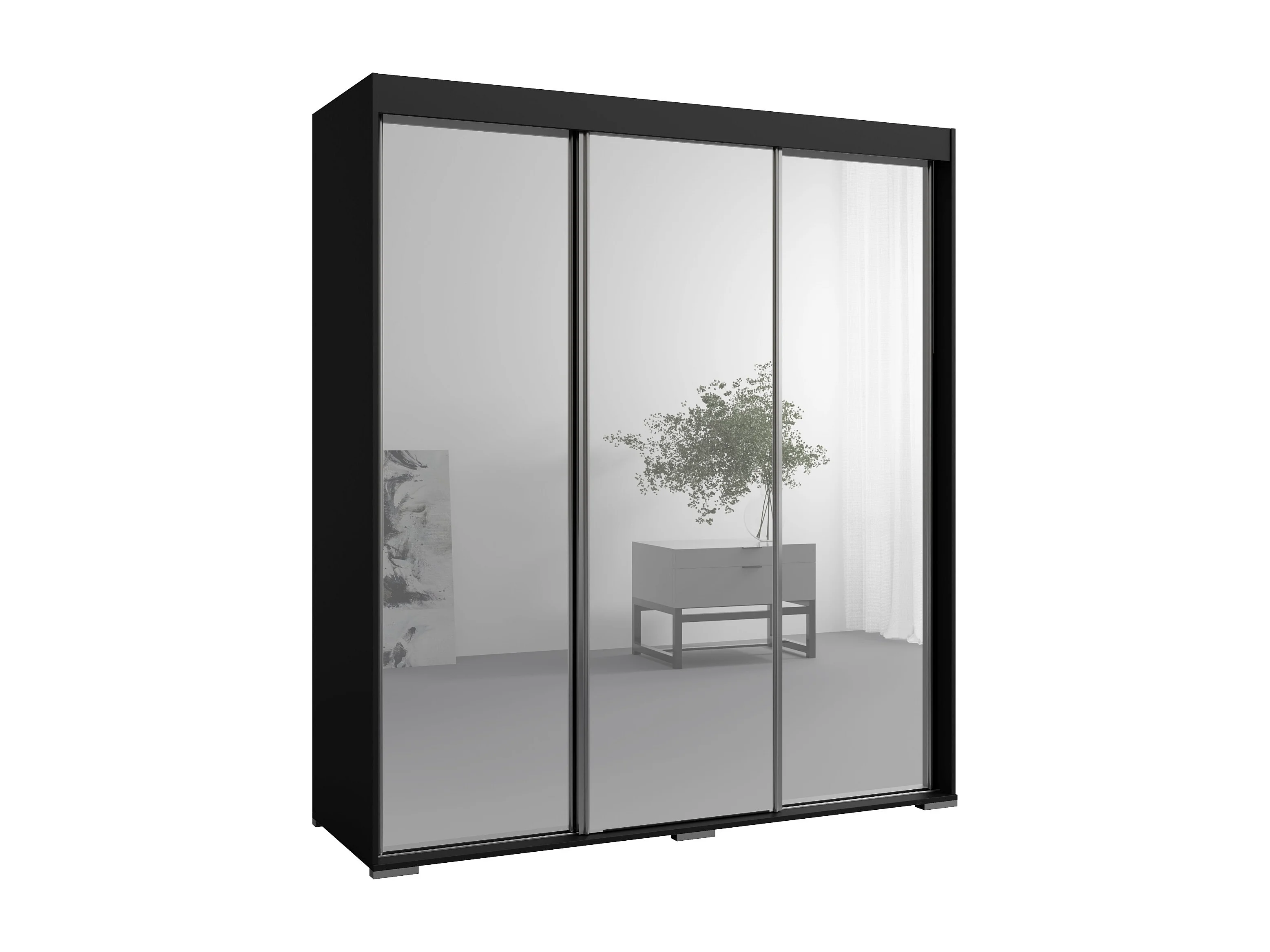 Schiebetürenchrank mit Schubladen und Spiegel Como 3D3L 180 Schwarz