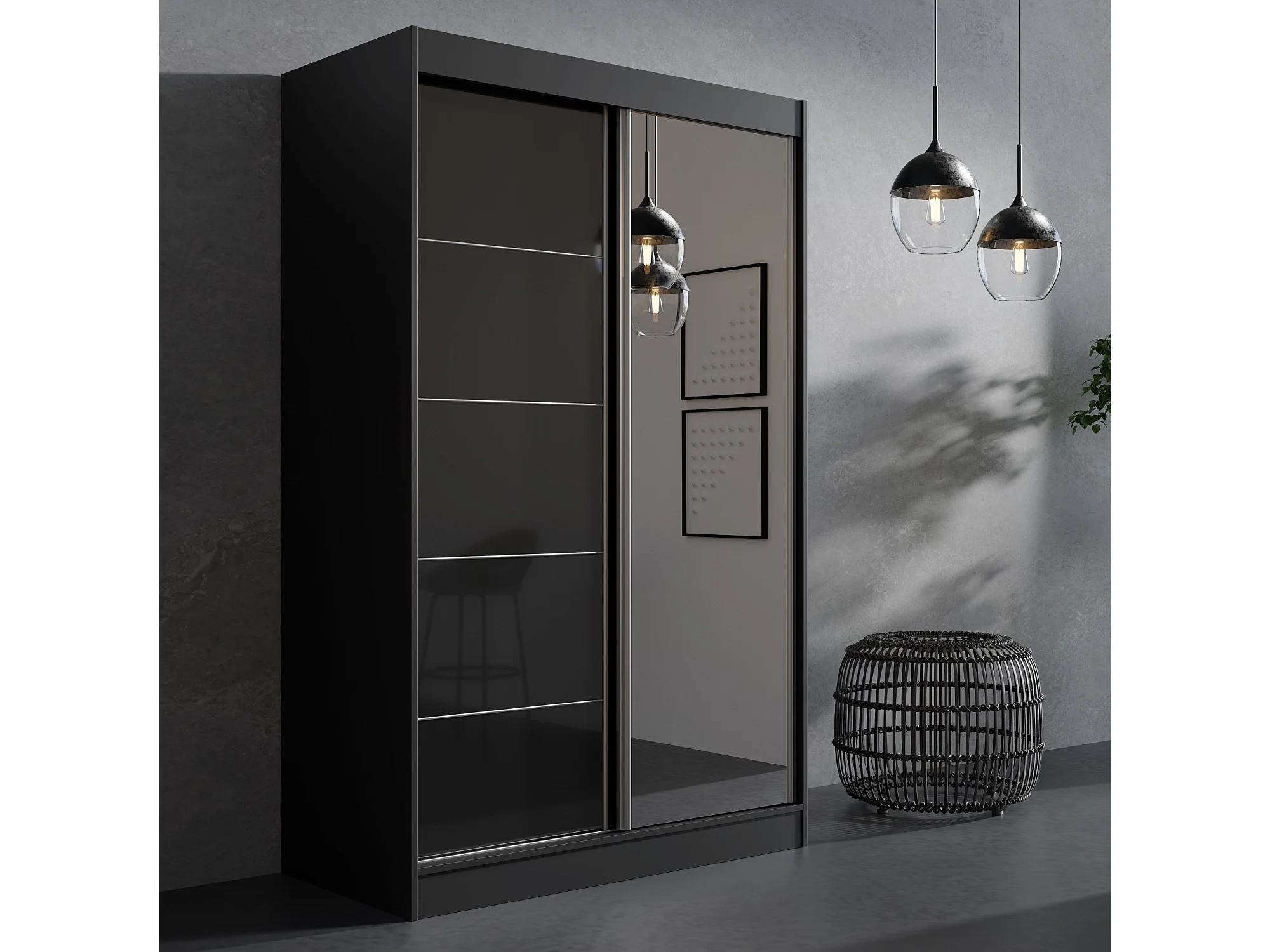 Schiebetürenchrank mit Spiegel Como 2D1L 120 Schwarz (lacobel)
