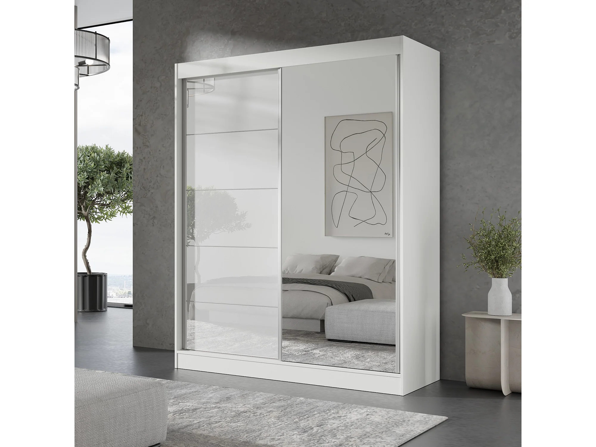 Schiebetürenchrank mit Spiegel Como 2D1L 150 Weiß (lacobel)