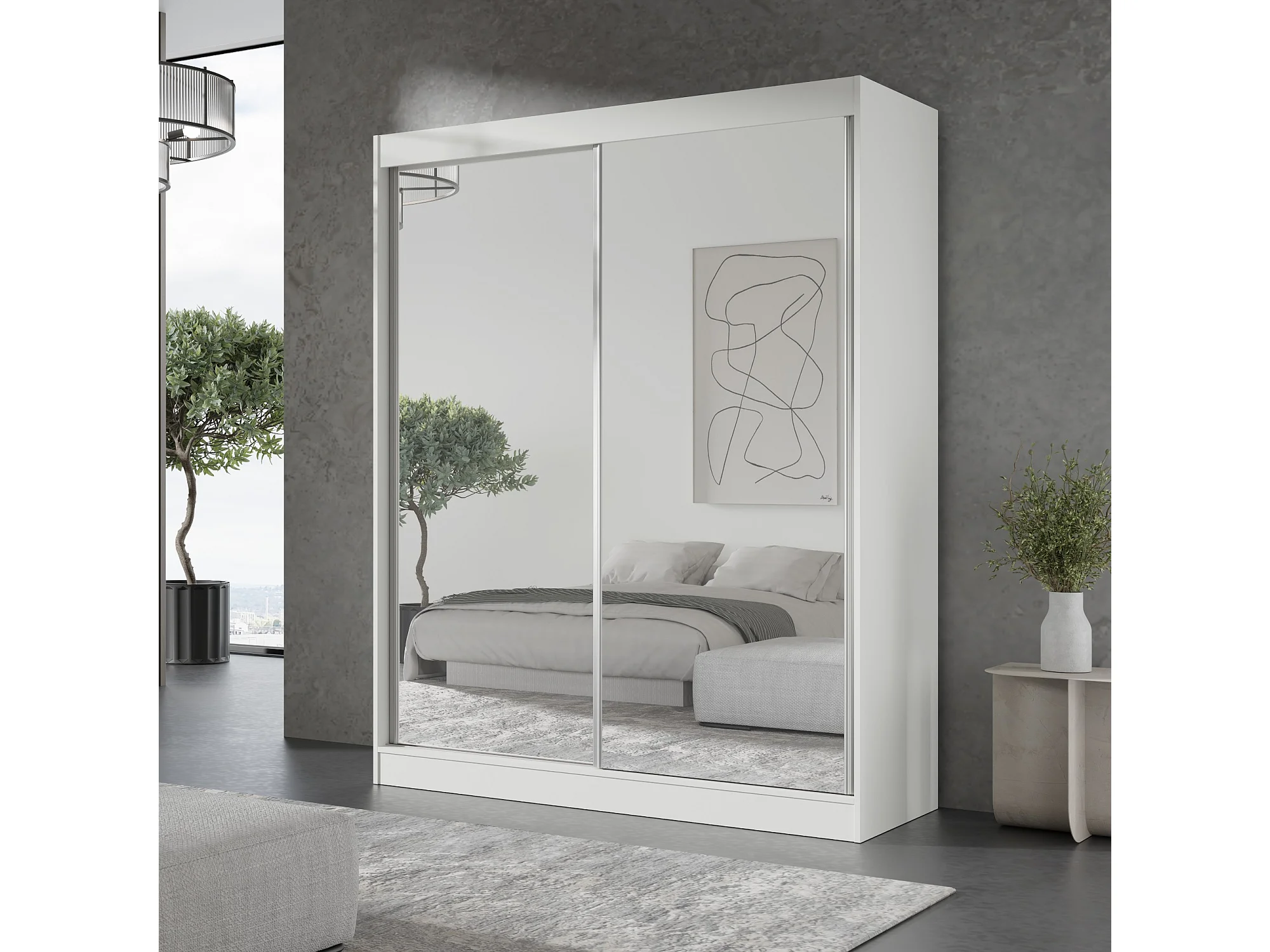 Schiebetürenchrank mit Spiegel Como 2D2L 150 Weiß