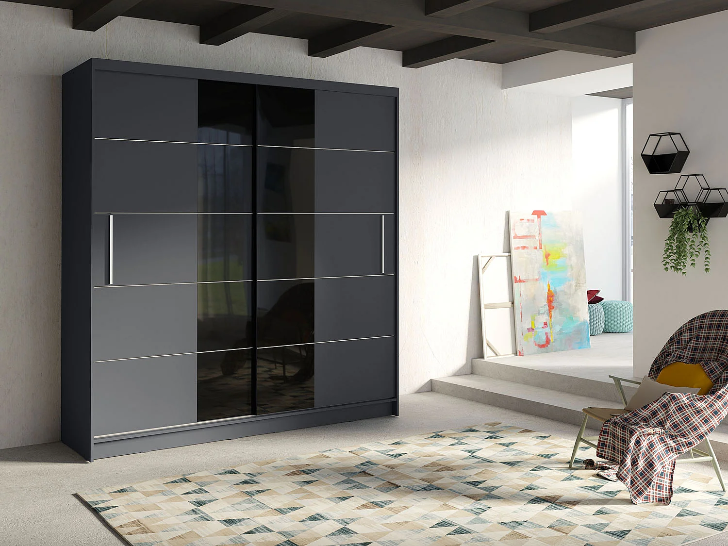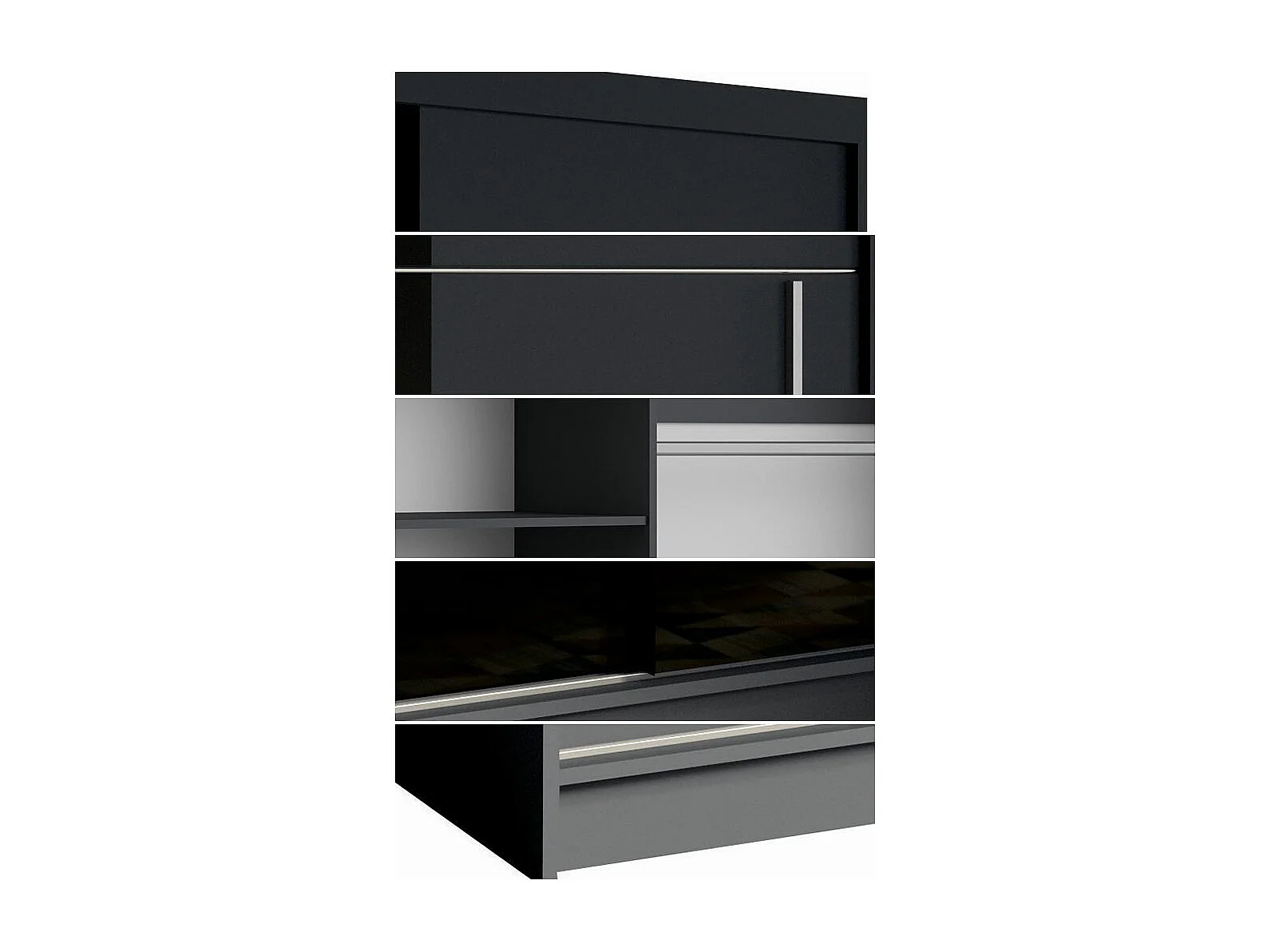 SCHIEBETÜRENSCHRANK Bruno graphitgrau / schwarz glänzend 200,4 / 60 / 215cm