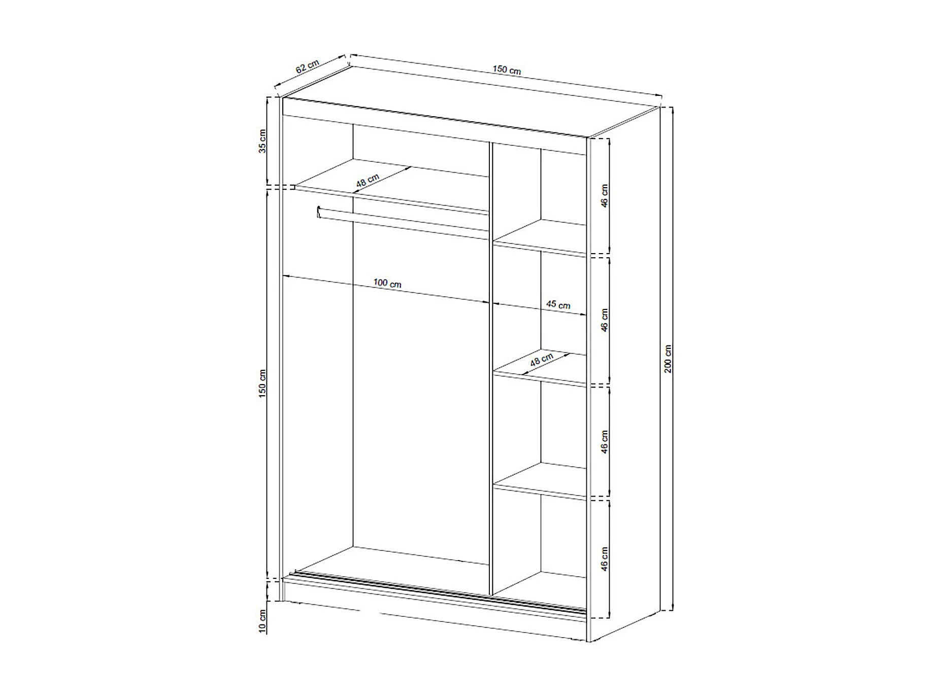 SCHIEBETÜRENSCHRANK Maja weiß 150 / 62 / 200 cm