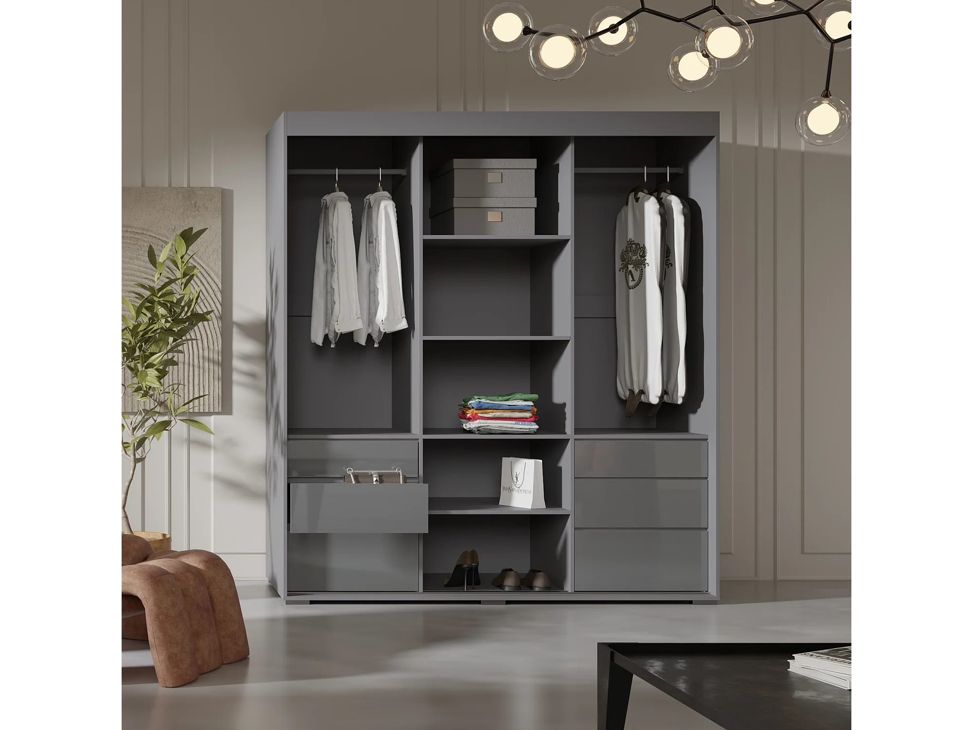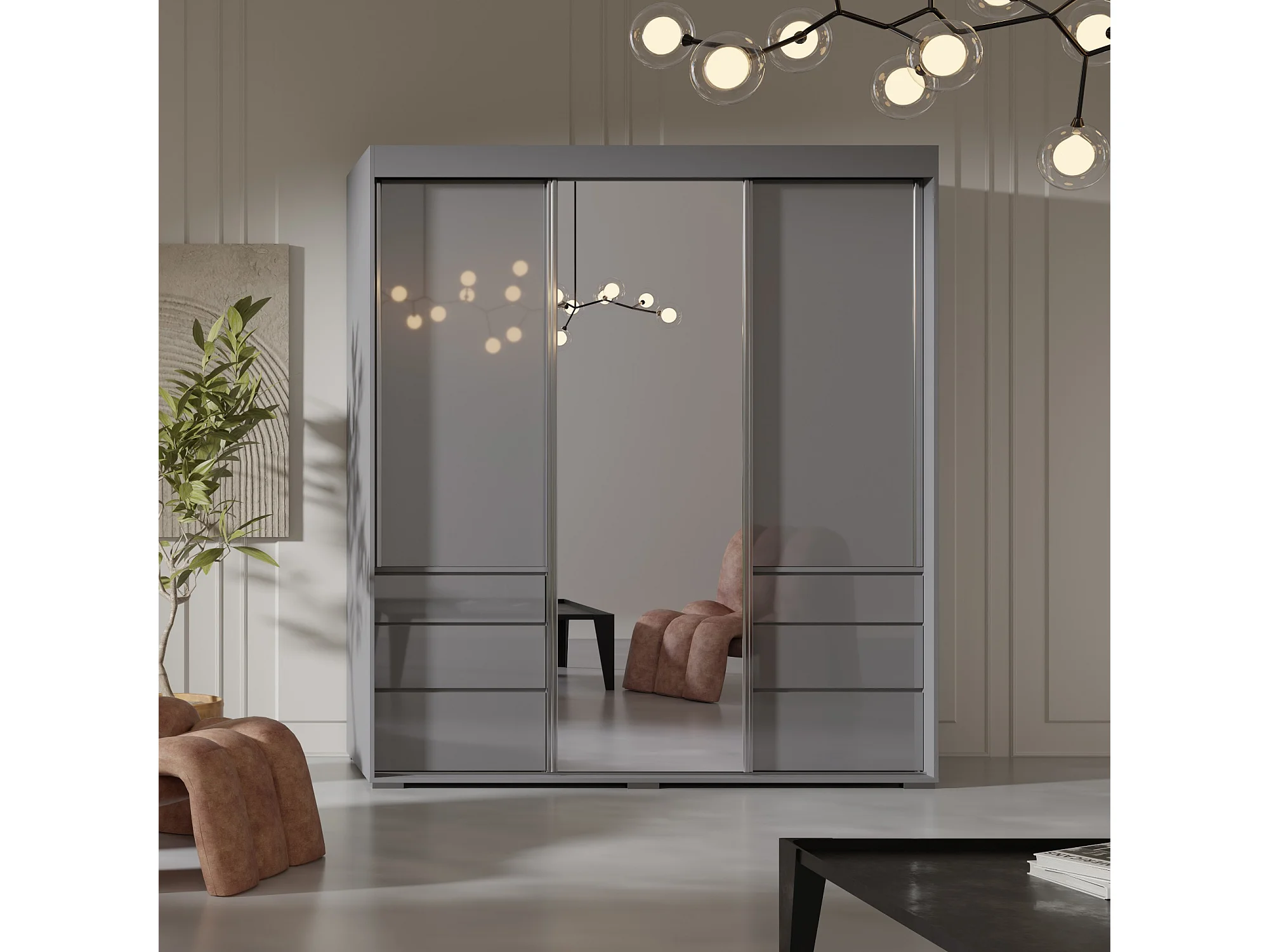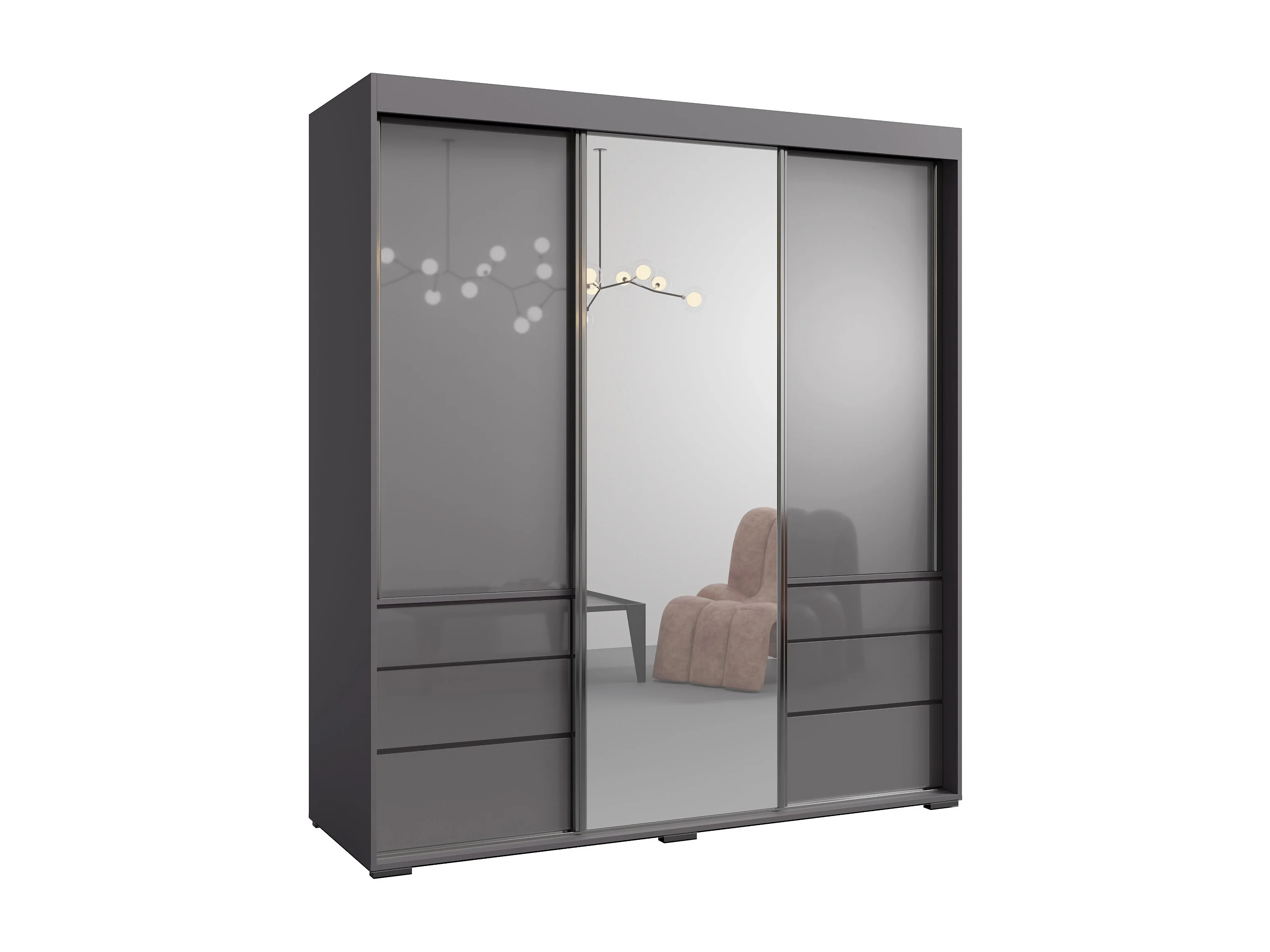 Schiebetürenschrank mit Schubladen und Spiegel Torino 3D1L 180 Grau (Lacobel)