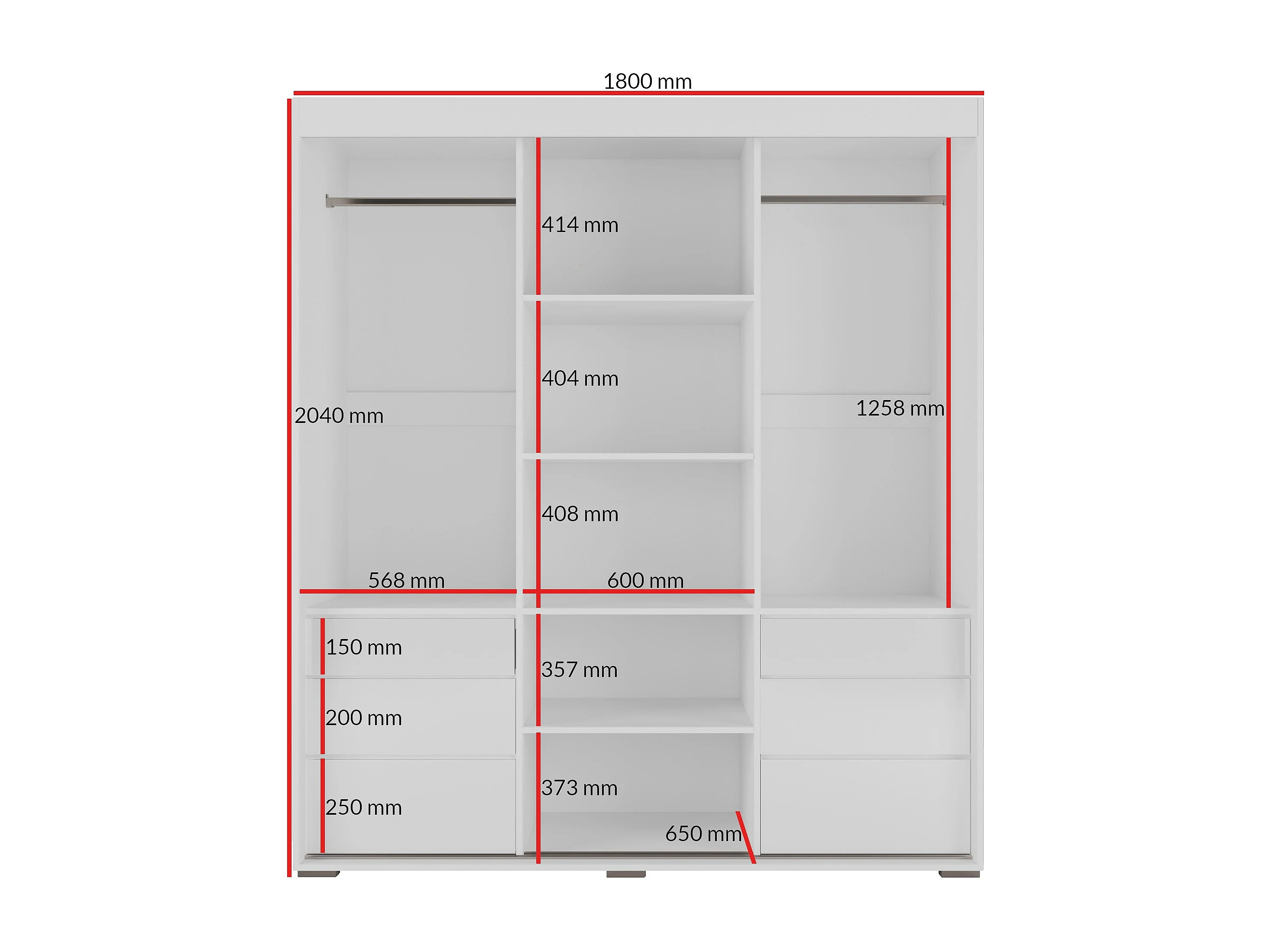 Schiebetürenschrank mit Schubladen und Spiegel Torino 3D1L 180 Weiß (Lacobel)
