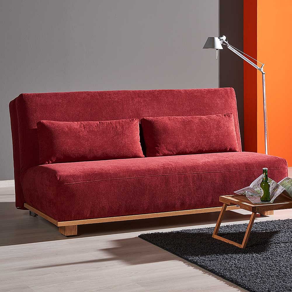 Schlafcouch in Rot Stoff Eiche Massivholz