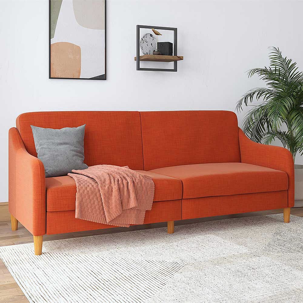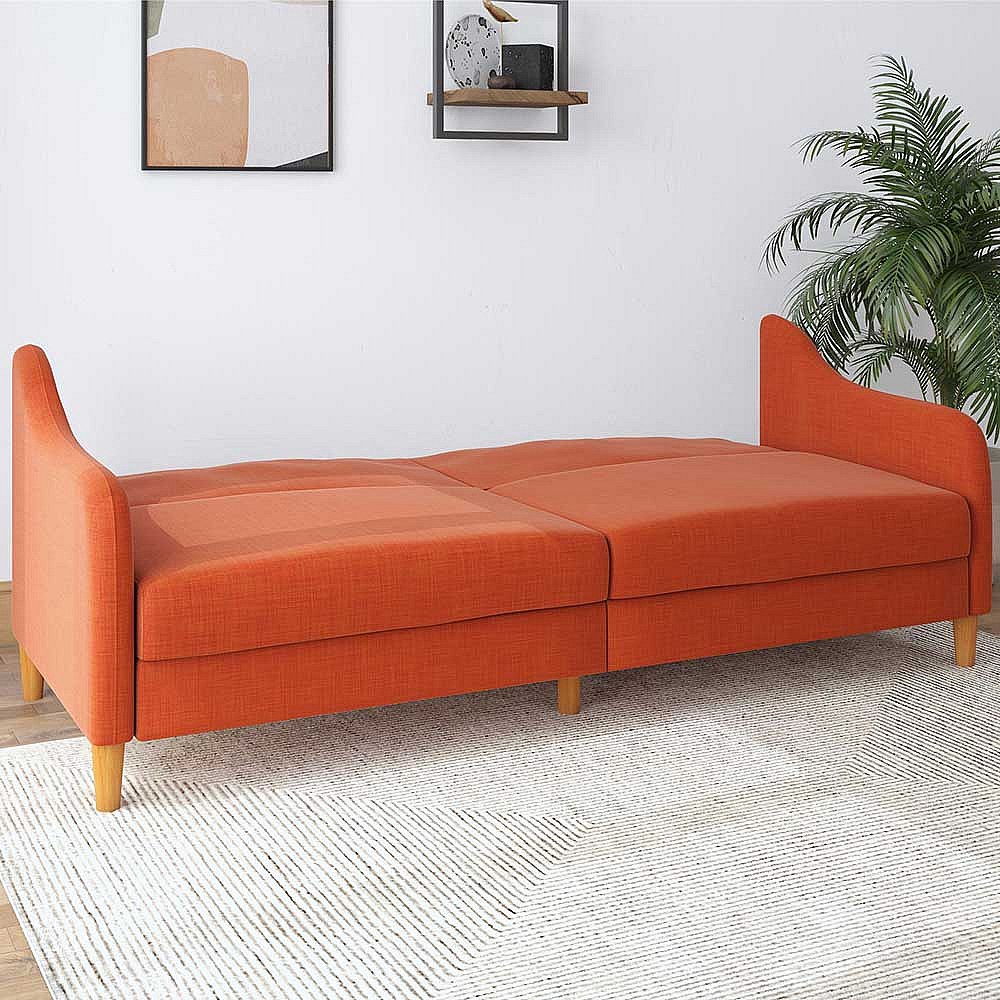 Schlafcouch Orange modern mit R�cken Klappmechanik 195 cm breit