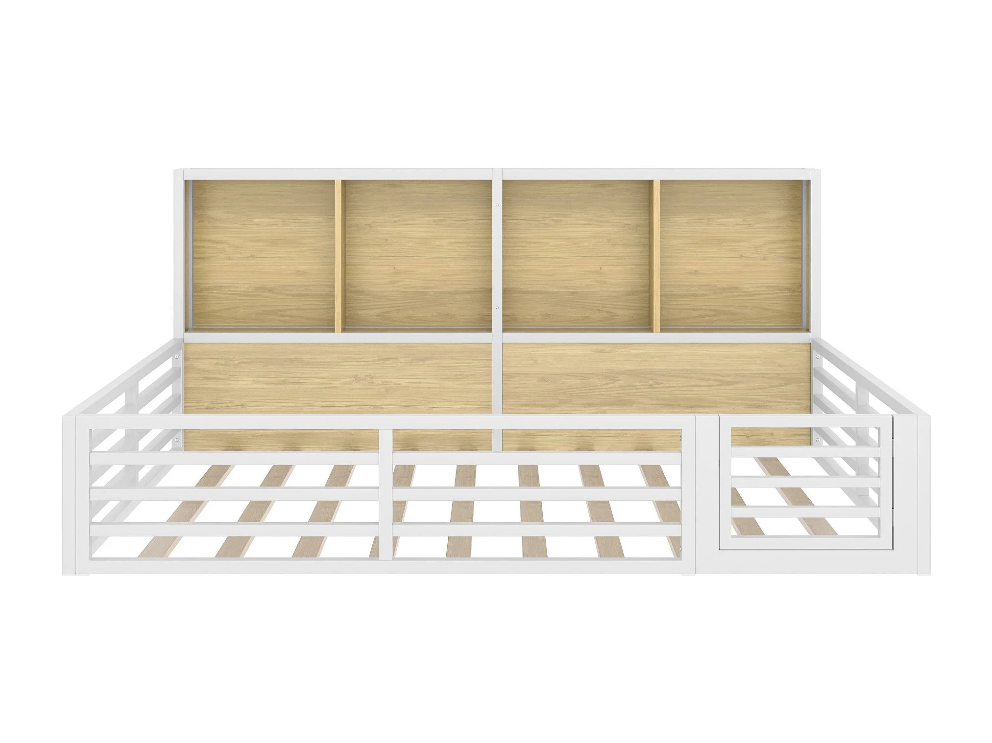 Schlafsofa 140 x 200 cm, Kinderbett mit Staufächern und Rausfallschutz, Metallgestell – weiß (ohne Matratze)