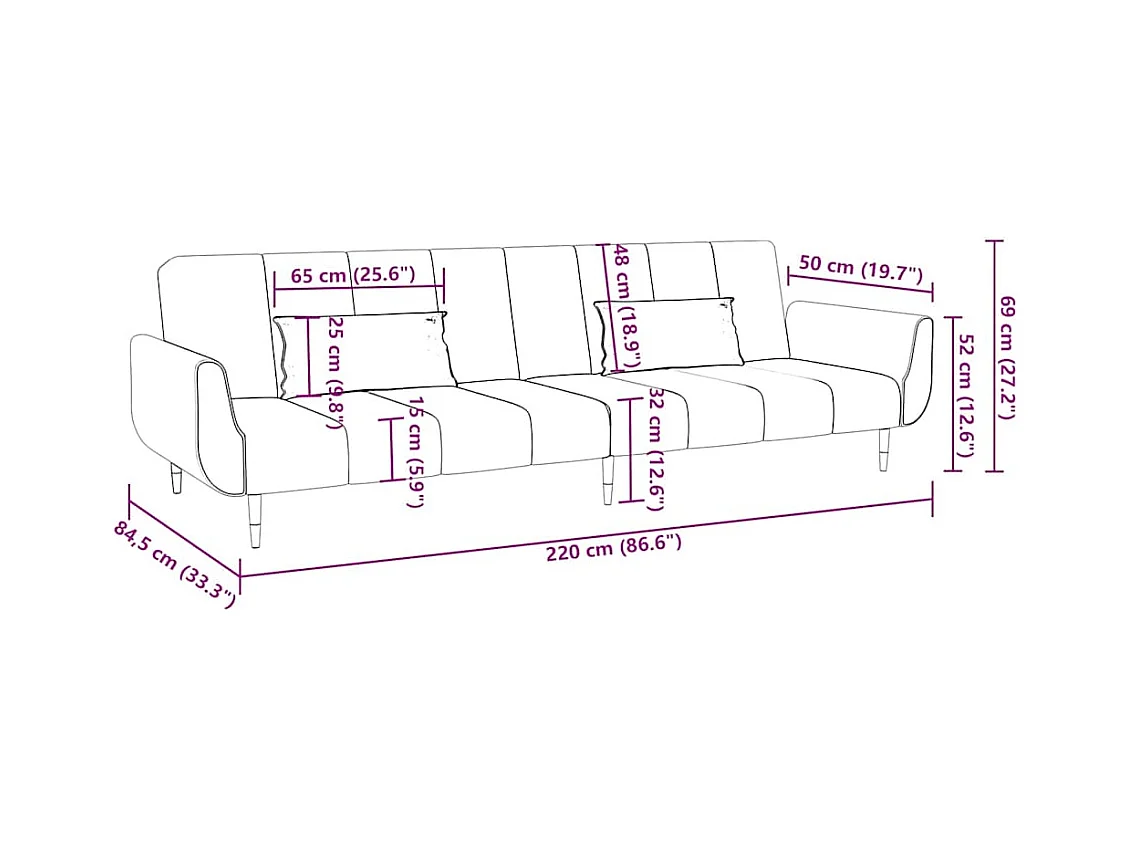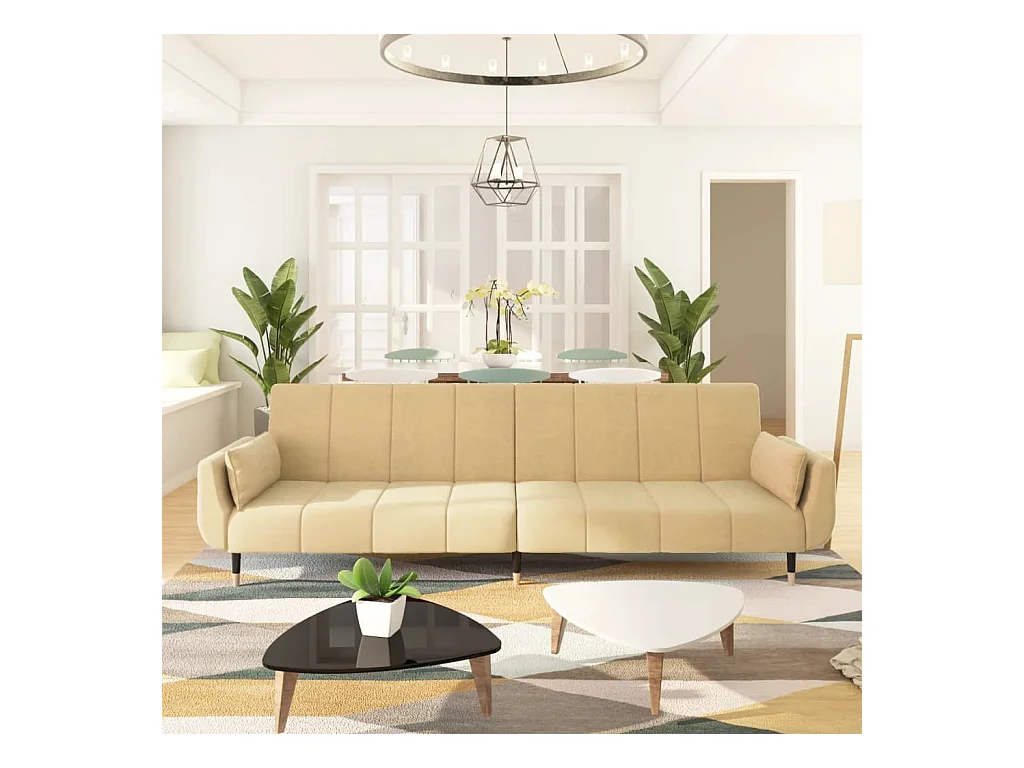 Schlafsofa 2-Sitzer mit 2 Kissen Creme Samt