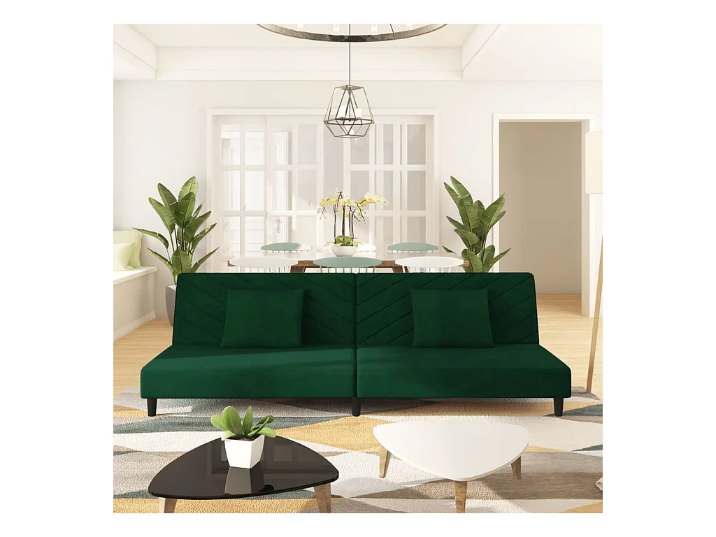 Schlafsofa 2-Sitzer mit 2 Kissen Dunkelgrün Samt