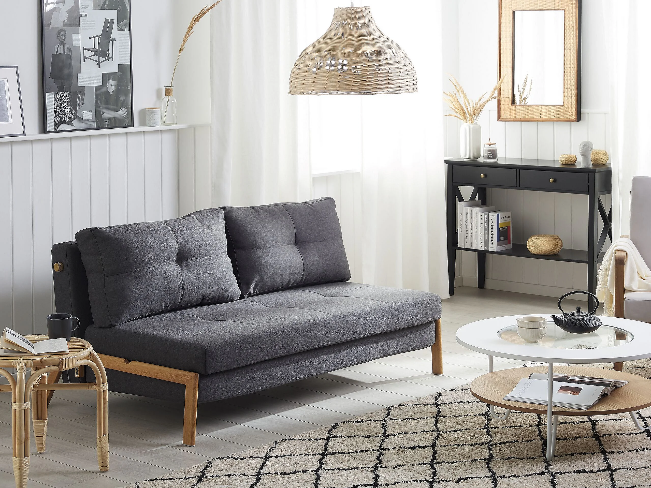 2-Sitzer Schlafsofa Stoffbezug dunkles Grau gesteppt hohe Metallbeine Edland