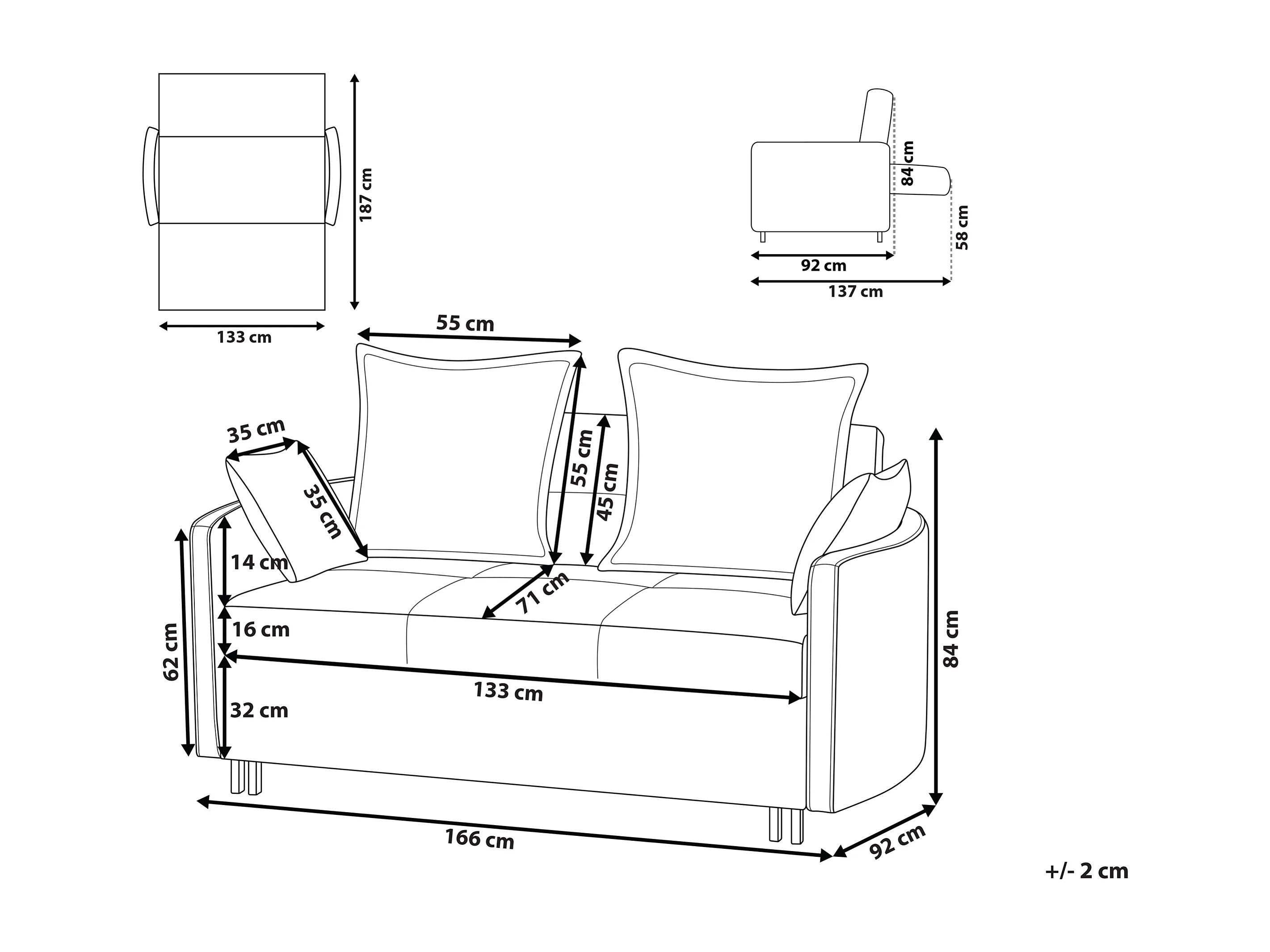 2-Sitzer Sofa mit Schlaffunktion Stoff hellgrau mehrere Kissen Schlafsofa Hovin