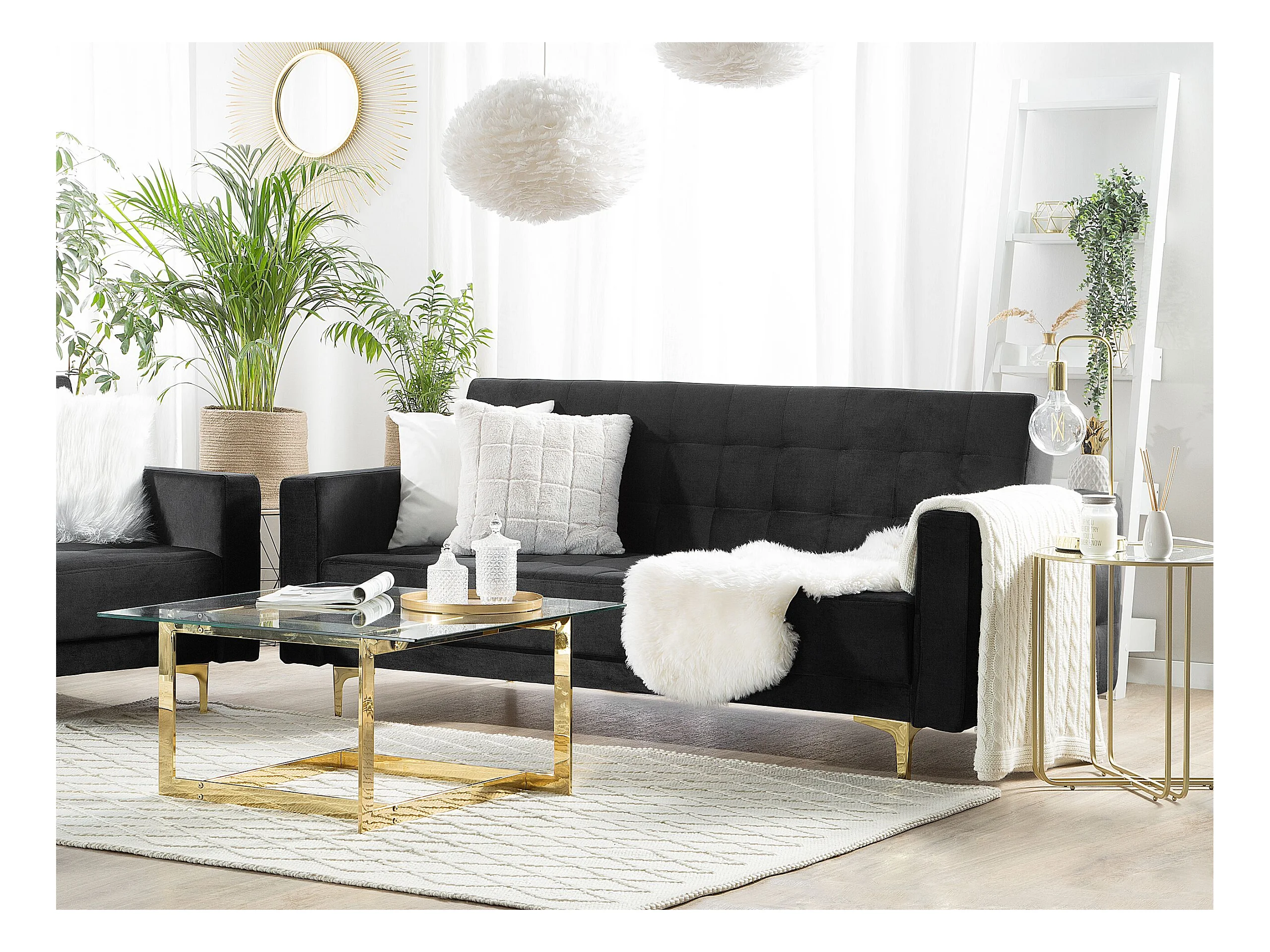 Schlafsofa ABERDEEN Samtstoff Schwarz 3-Sitzer