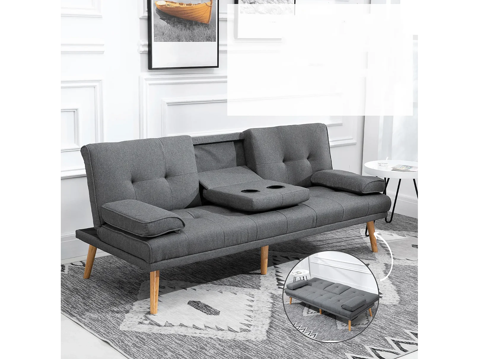 Schlafsofa, 3-Sitzer-Sofa, 2 Kissen,Modernes Wohnzimmer