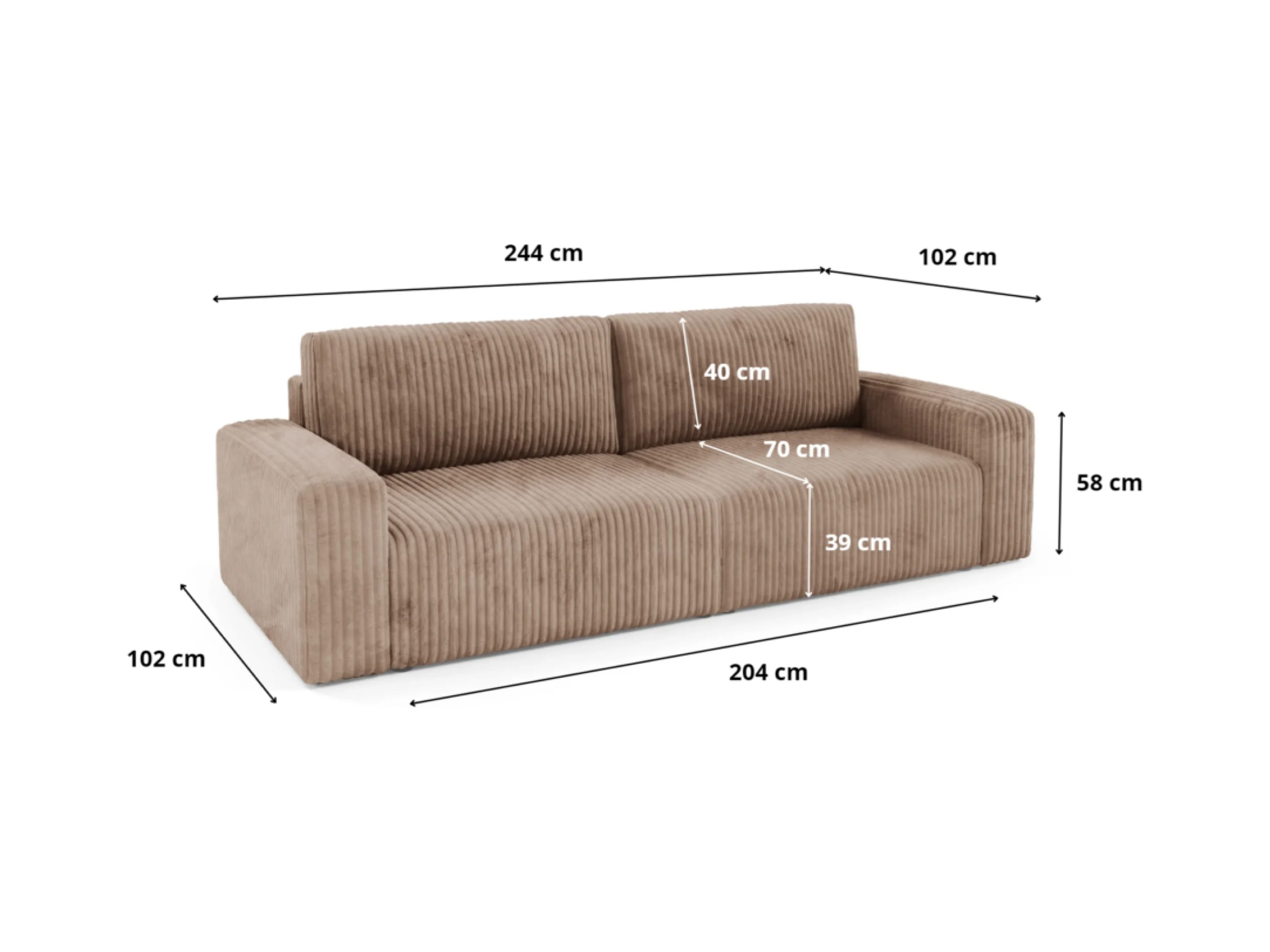 Schlafsofa 4-Sitzer Cord FANO Grau