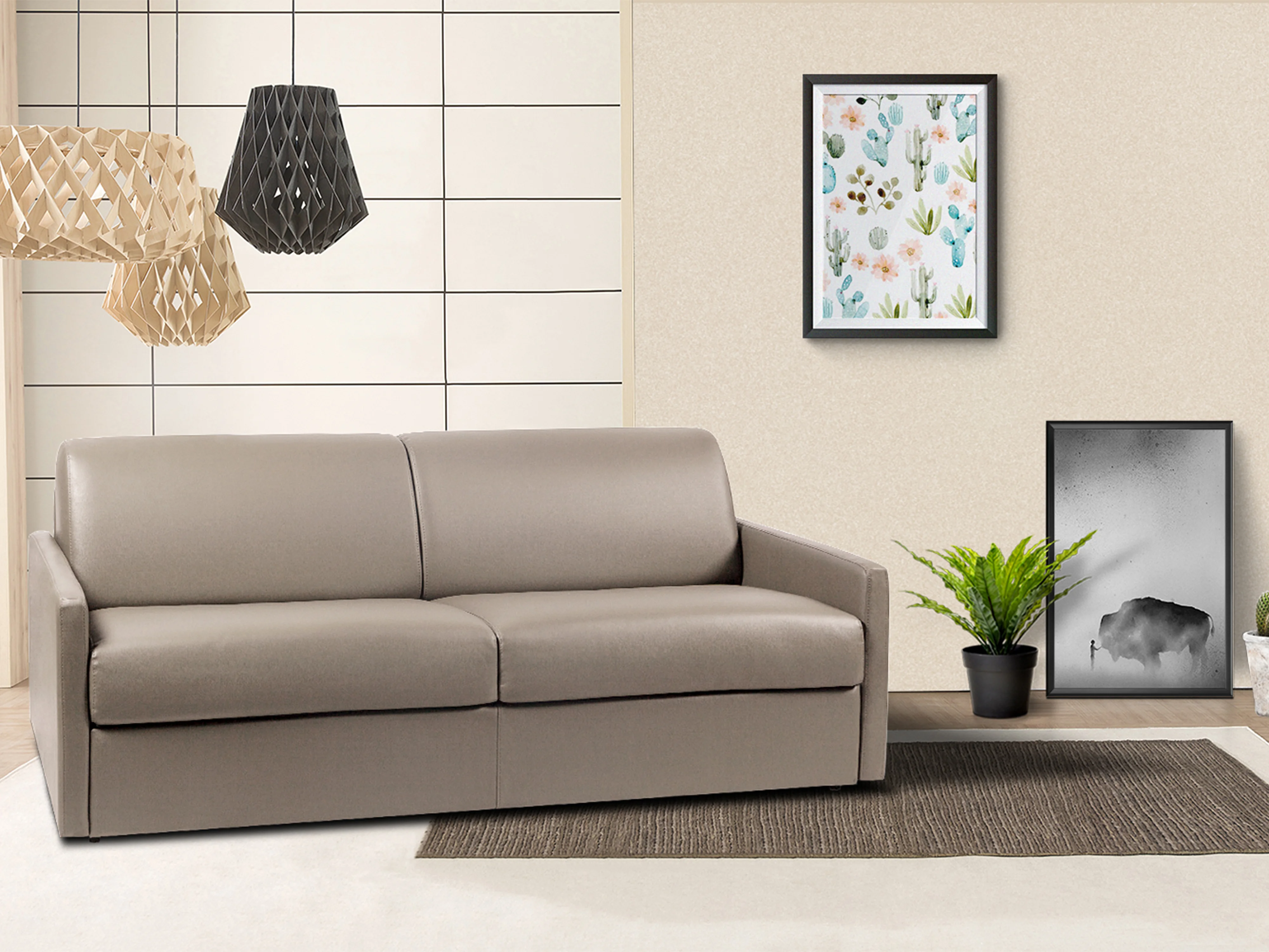 Schlafsofa 4-Sitzer - Liegefläche: 160 cm - Matratzenhöhe: 18 cm - Kunstleder - Taupe - CALIFE