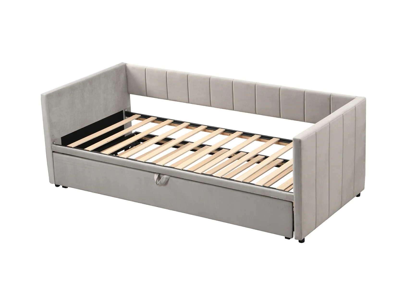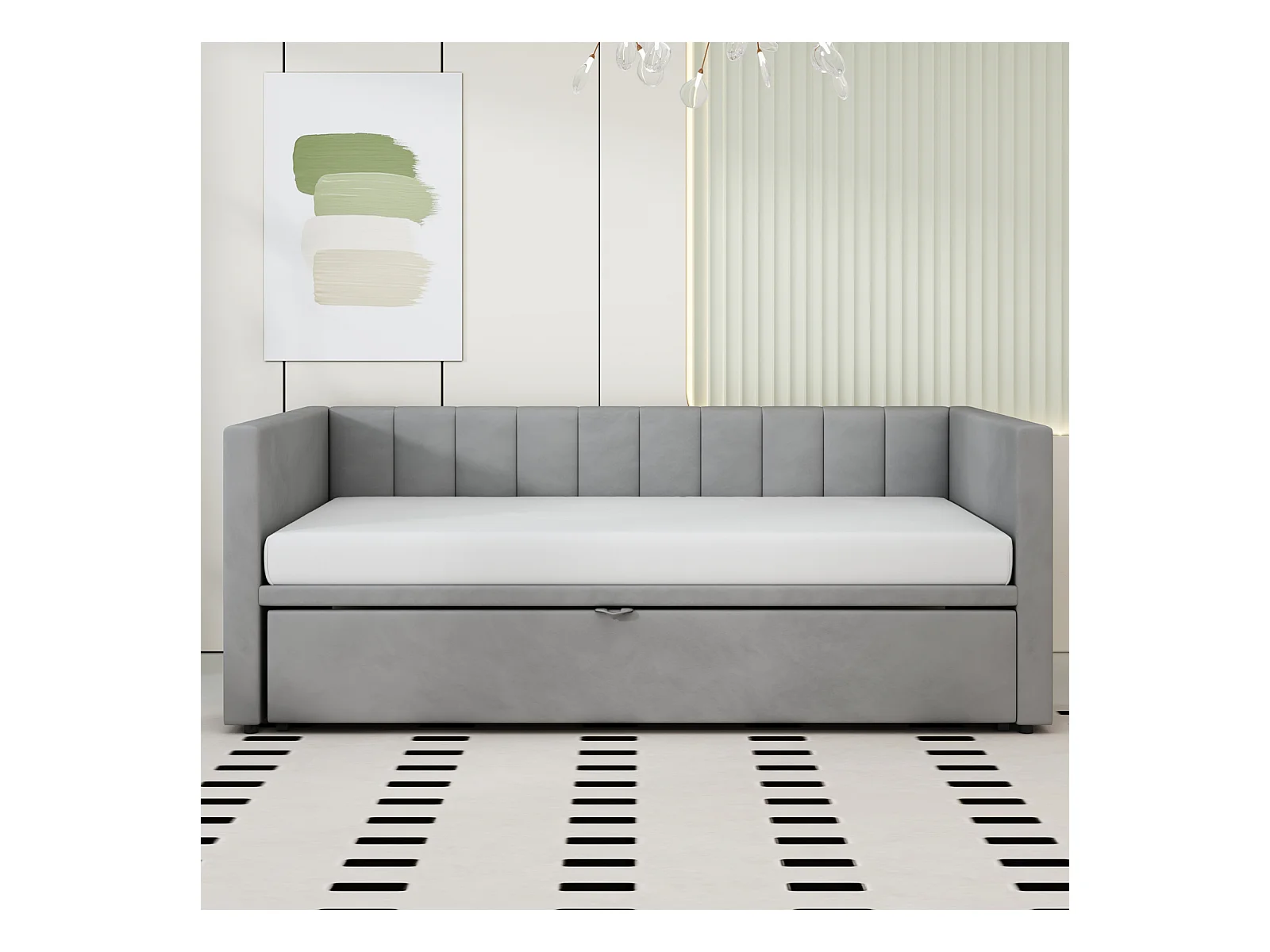 Schlafsofa 90/180x200 cm in grauem Samt – Ausziehbett mit Lattenrost, multifunktional