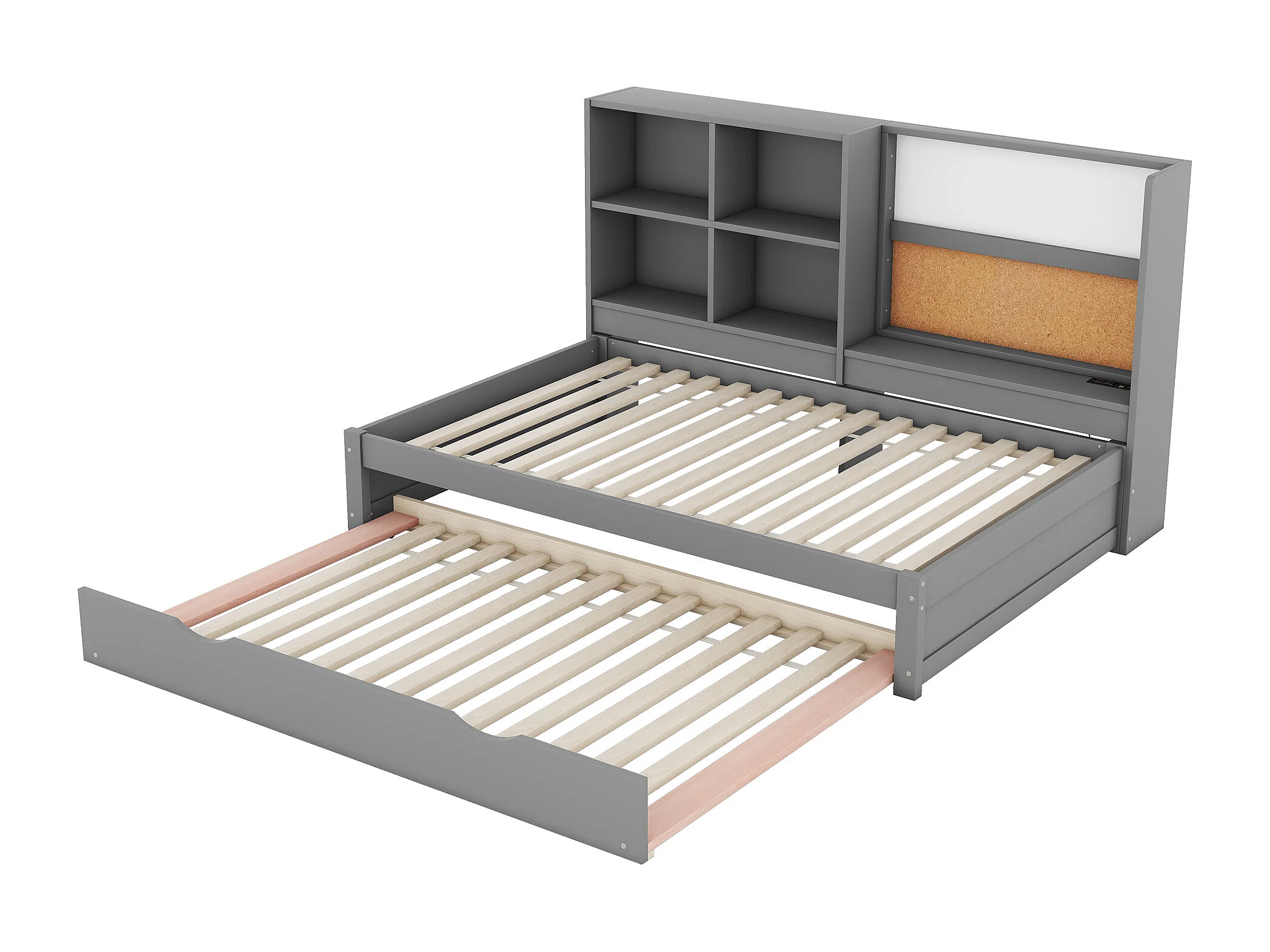 Schlafsofa – 90 x 200 cm – mehrere Staufächer – mit USB-Anschluss und Grafikdesign – Frontplatte – grau