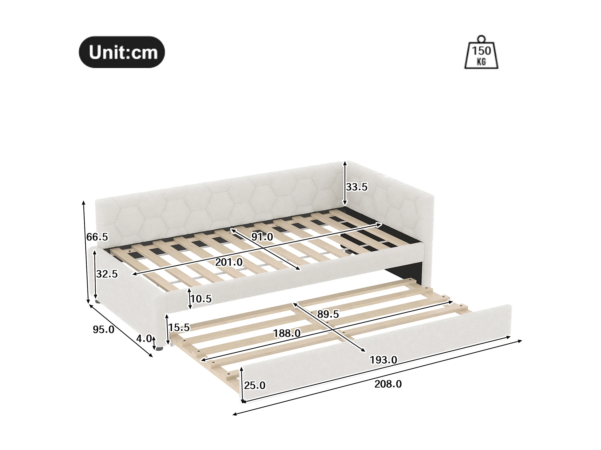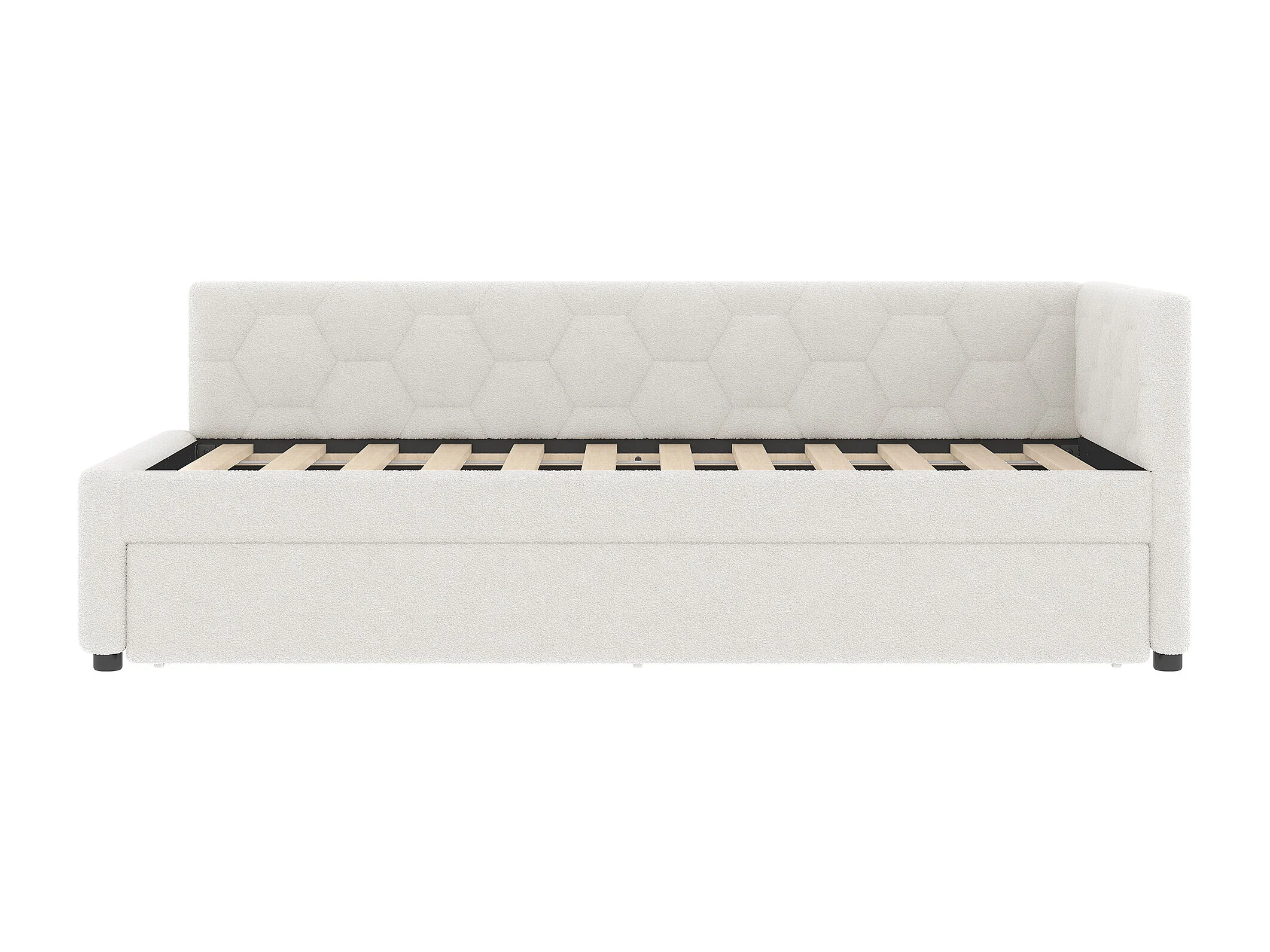 Schlafsofa 90 x 200 cm, weißer Plüsch, Ausziehbett mit Nachttischlampe und USB – ohne Matratze